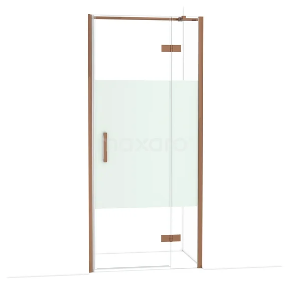 Diamond Duschtür | 90 cm Glänzendes Kupfer Klar mit matter Streifen Drehtür