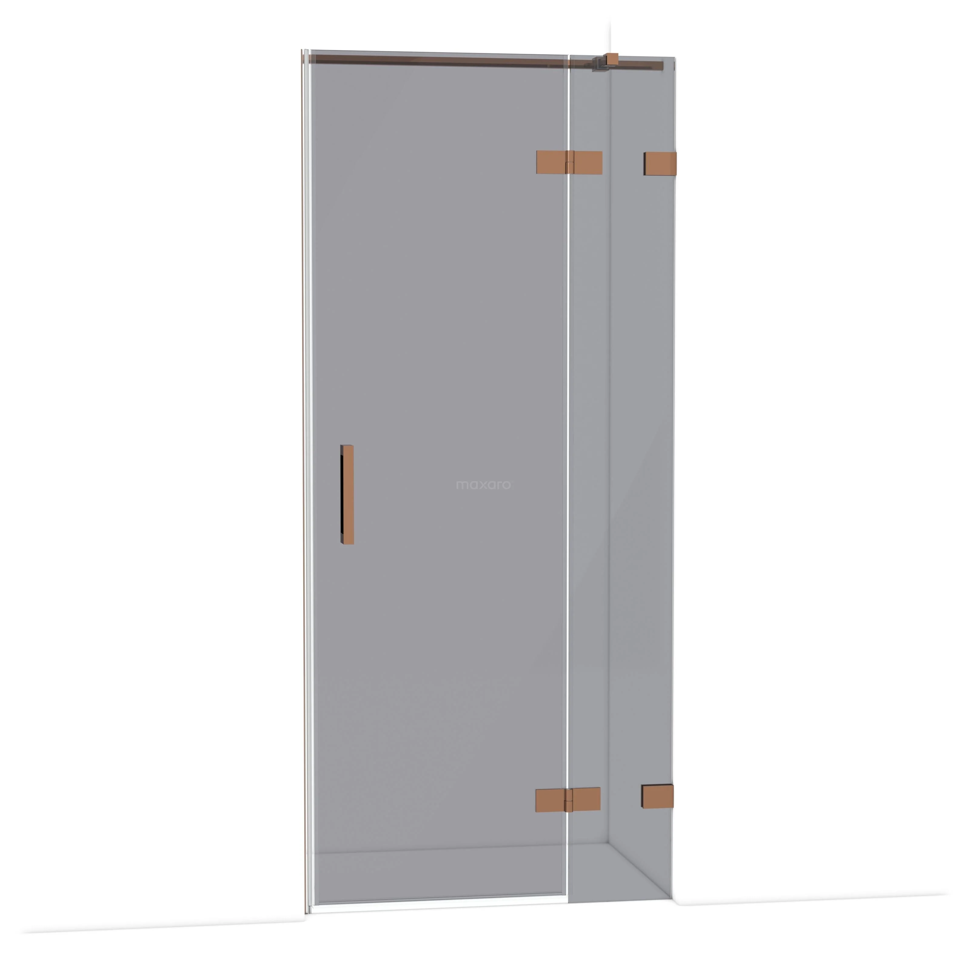 Die 90 cm lange Drehtür von Diamond ist ideal, um Ihren Duschbereich abzuschließen. Sie hat ein markantes Design aus glänzendem Kupfer und ist mit hochwertigen Scharnieren, einer Zweipunktbefestigung und einem vertikalen Griff ausgestattet. Das Rauchglas sorgt für eine schicke Optik. Durch die Verstellbarkeit lässt sich die Duschtür leicht anpassen. Die Gesamtbreite ist von 89,7 bis 90 cm verstellbar.