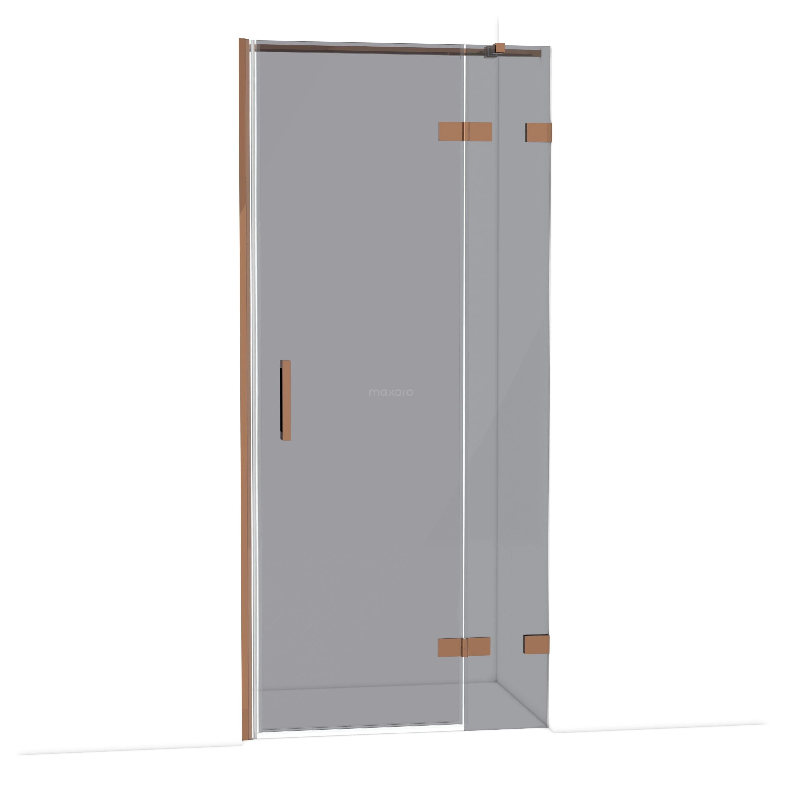 Die 90 cm lange Drehtür von Diamond ist ideal, um Ihren Duschbereich abzuschließen. Sie hat ein markantes Design aus glänzendem Kupfer und ist mit hochwertigen Scharnieren, einer Zweipunktbefestigung und einem vertikalen Griff ausgestattet. Das Rauchglas sorgt für eine schicke Optik. Durch die Verstellbarkeit lässt sich die Duschtür leicht anpassen. Die Gesamtbreite ist von 91,7 bis 92,7 cm verstellbar.