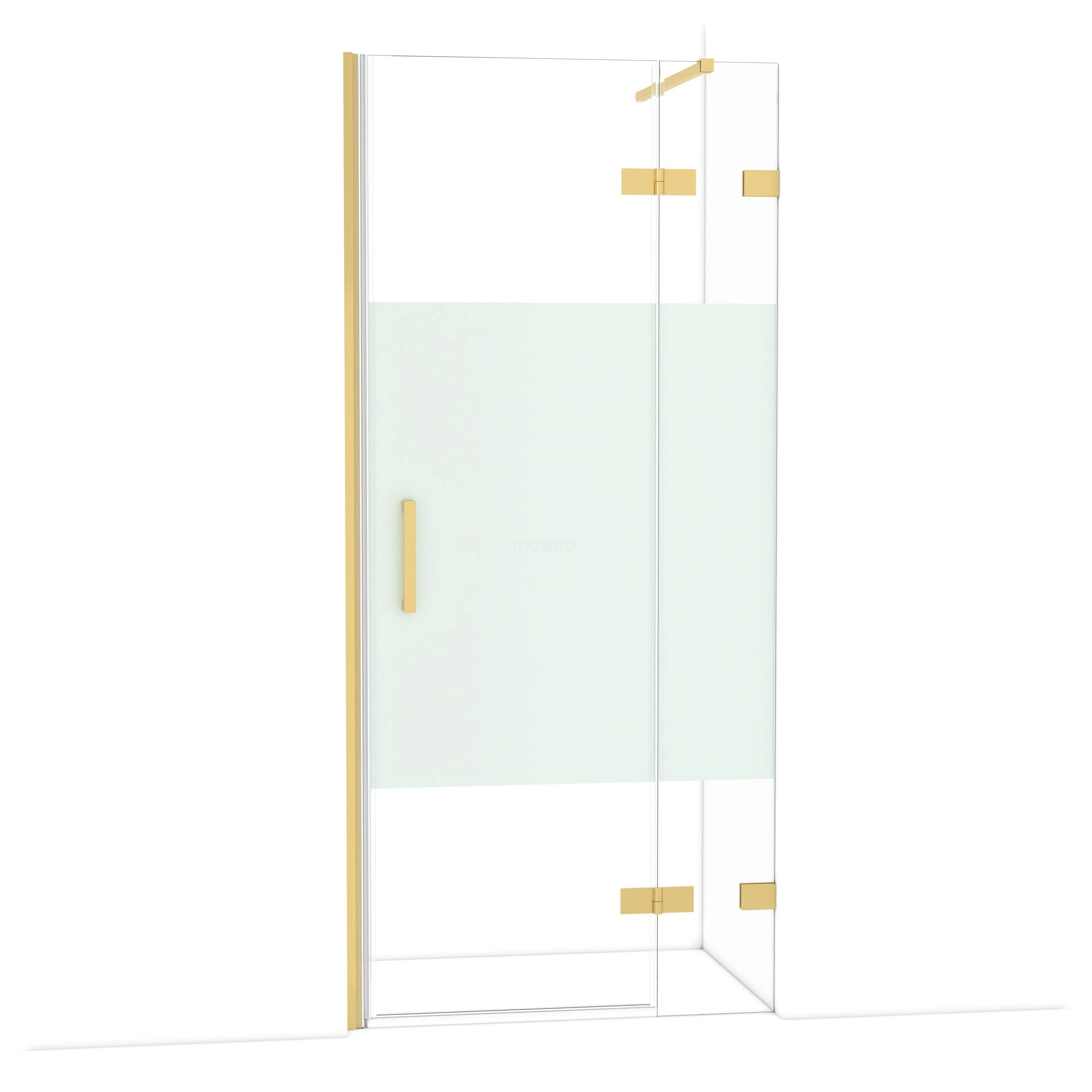 Die Diamond-Drehtür von 90 cm ist ideal, um deine Dusche abzuschließen. Dieses Exemplar hat ein luxuriöses Design aus Gold und ist mit hochwertigen Scharnieren, einer Zweipunktbefestigung und einem vertikalen Griff ausgestattet. Das Klarglas mit matter Streifen sorgt für mehr Privatsphäre. Durch die Verstellbarkeit lässt sich die Duschtür leicht anpassen. Die Gesamtbreite ist von 91,7 bis 92,7 cm verstellbar.