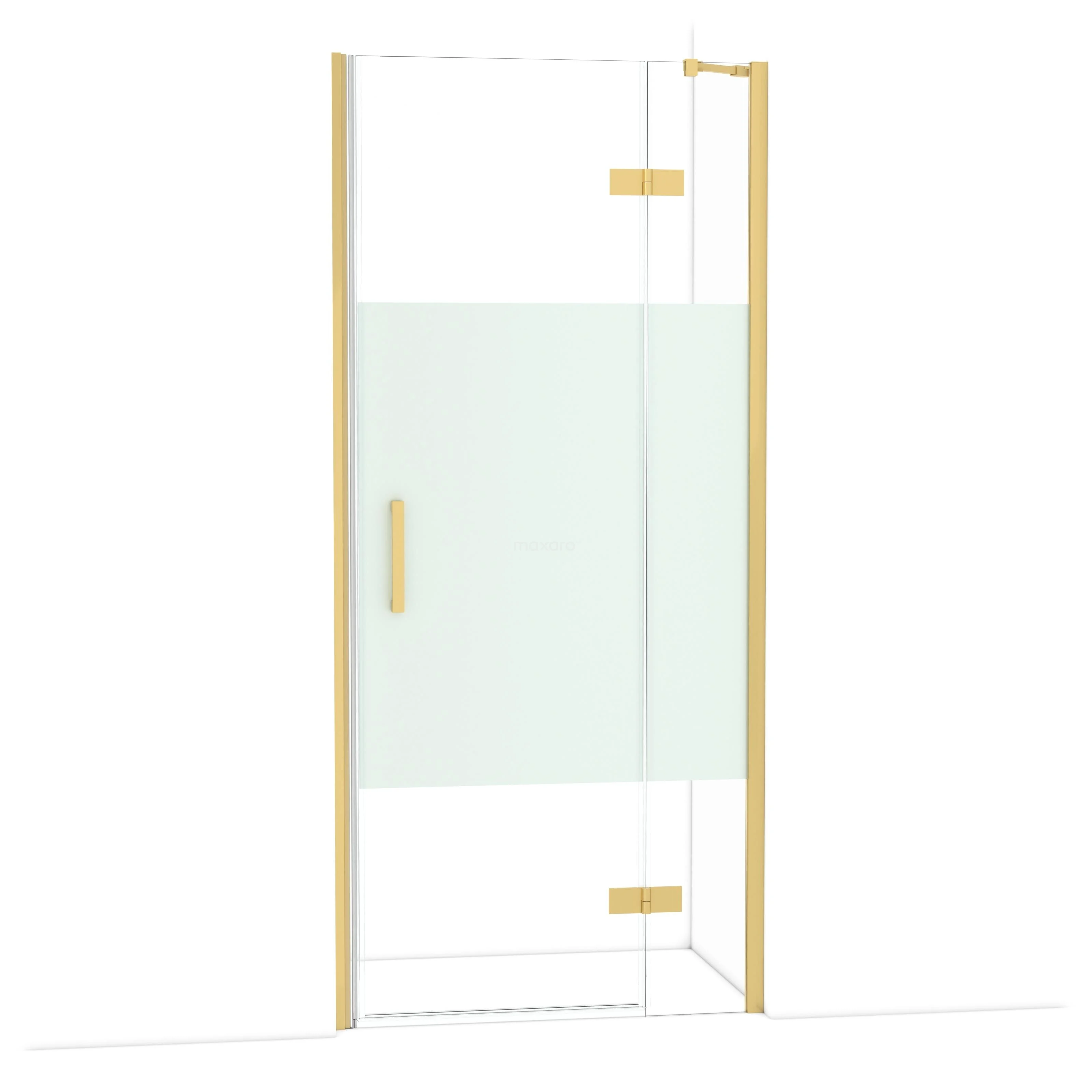 Die Diamond-Drehtür von 90 cm ist ideal, um deine Duschnis zu schließen. Dieses Exemplar hat ein luxuriöses Design aus Gold und ist mit hochwertigen Scharnieren, Wandprofil und einem vertikalen Griff ausgestattet. Das Klarglas mit matter Streifen sorgt für mehr Privatsphäre. Durch die Verstellbarkeit lässt sich die Duschtür leicht anpassen. Die Gesamtbreite ist von 91,8 bis 94 cm verstellbar.