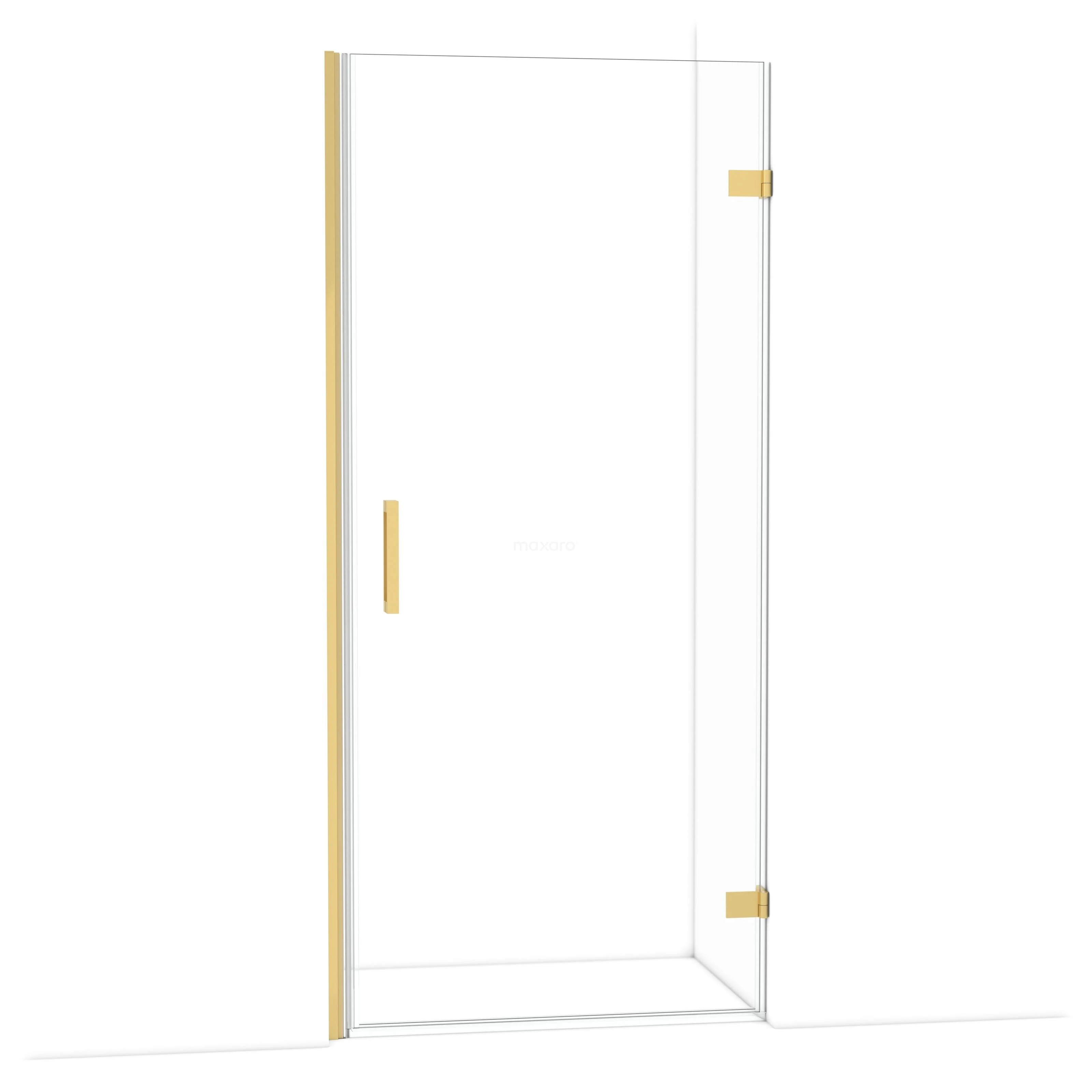 Die Diamond-Drehtür von 90 cm ist ideal, um deine Dusche abzuschließen. Dieses Exemplar hat ein luxuriöses Design aus Gold und ist mit hochwertigen Wand-Scharnieren und einem vertikalen Griff ausgestattet. Das Klarglas sorgt für ein räumliches Gefühl. Durch die Verstellbarkeit lässt sich die Duschtür leicht anpassen. Die Gesamtbreite ist von 92 bis einschließlich 92,7 cm verstellbar.
