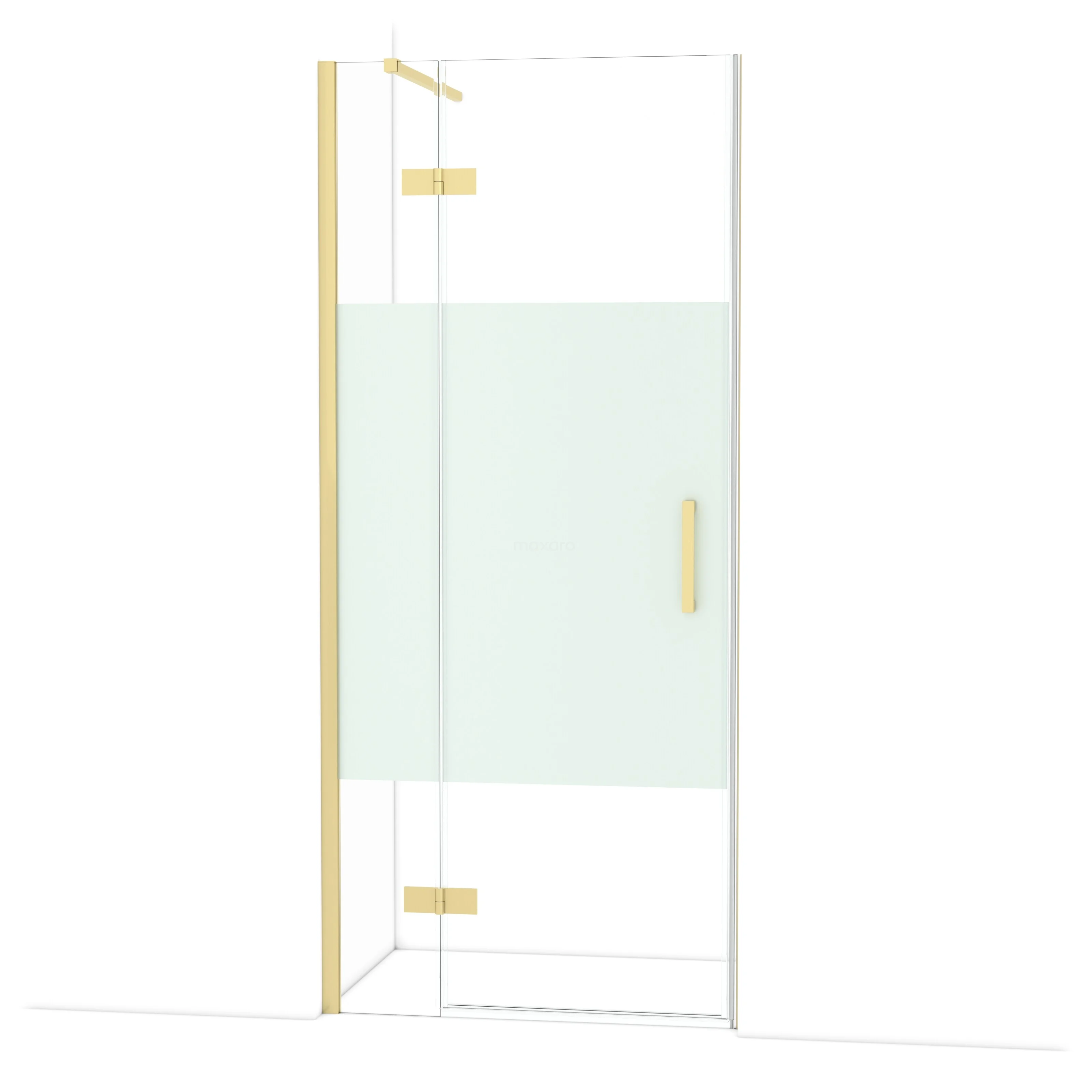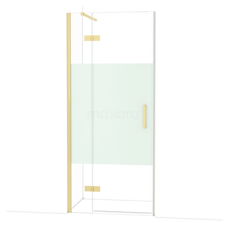 Diamond Duschtür | 90 cm Helles Gold Klar mit matter Streifen Drehtür