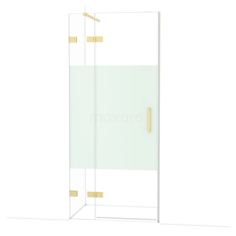 Die 90 cm lange Drehtür von Diamond ist ideal zum Abschließen Ihres Duschbereichs. Sie hat eine hellgoldene Oberfläche und verfügt über hochwertige Scharniere, eine Zwei-Punkt-Befestigung und einen vertikalen Griff. Das Klarglas mit mattiertem Streifen sorgt für mehr Privatsphäre. Die Verstellbarkeit macht es einfach, die Duschtür zu montieren. Die Gesamtbreite ist von 89,7 bis 90 cm verstellbar.