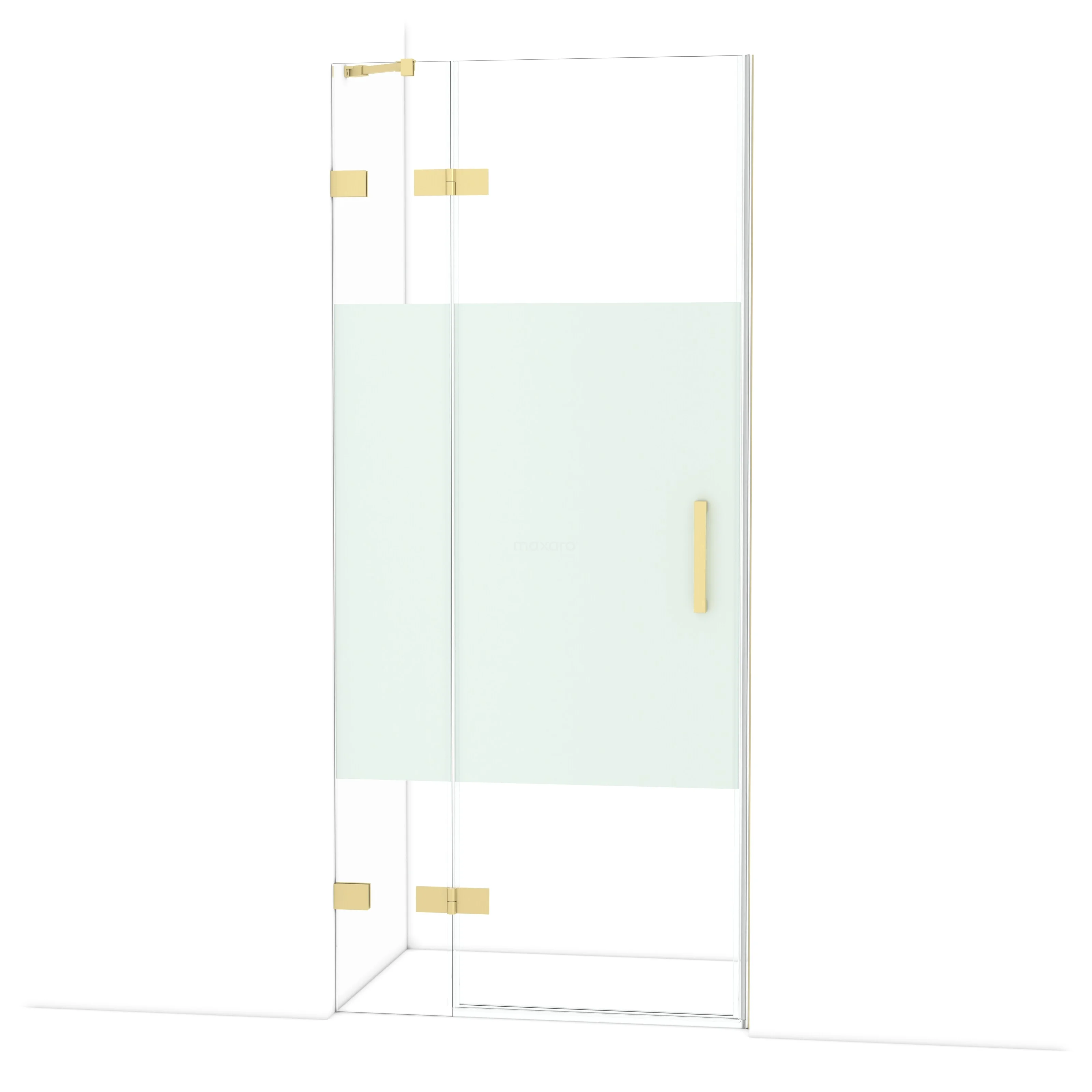 Diamond Duschtür | 90 cm Helles Gold Klar mit matter Streifen Drehtür