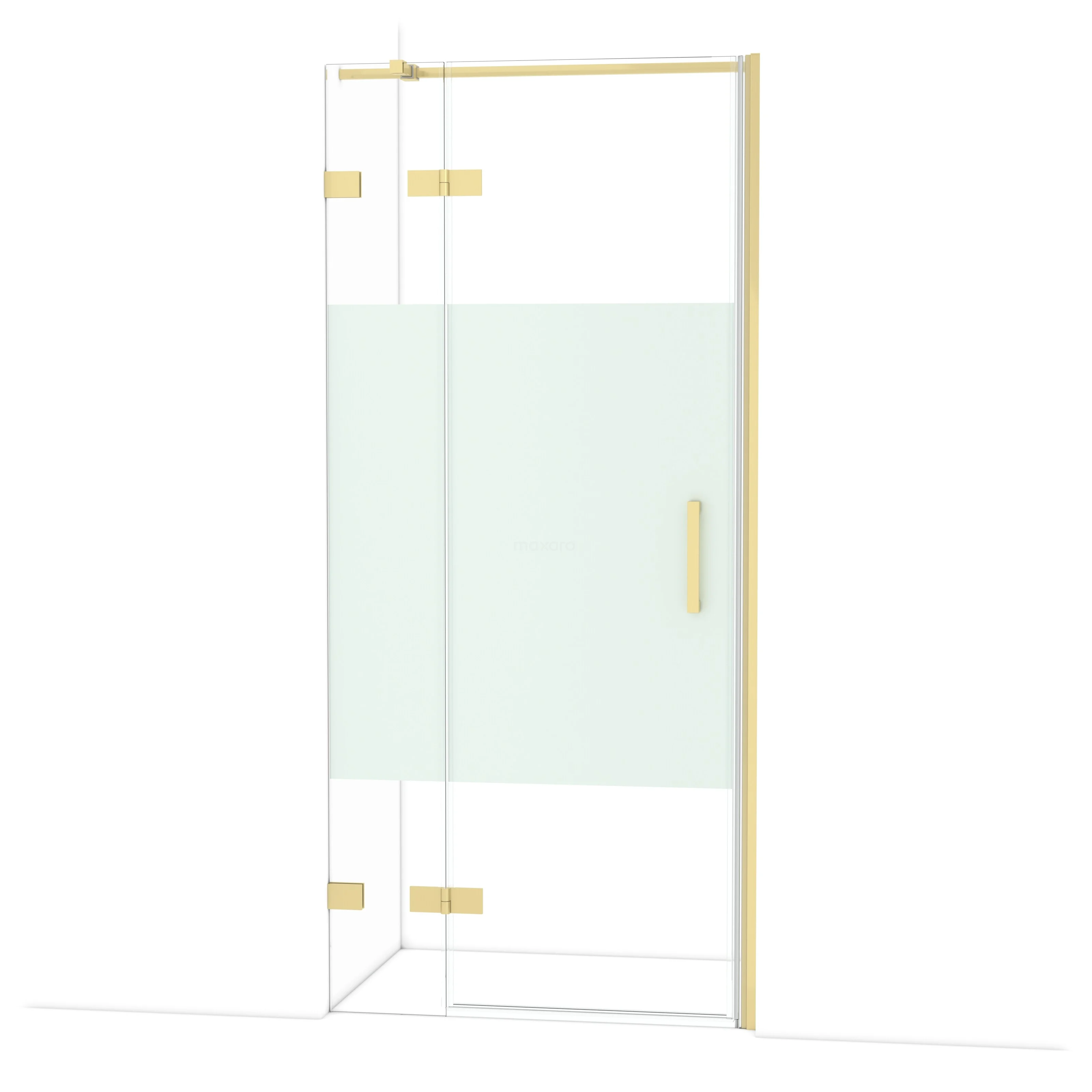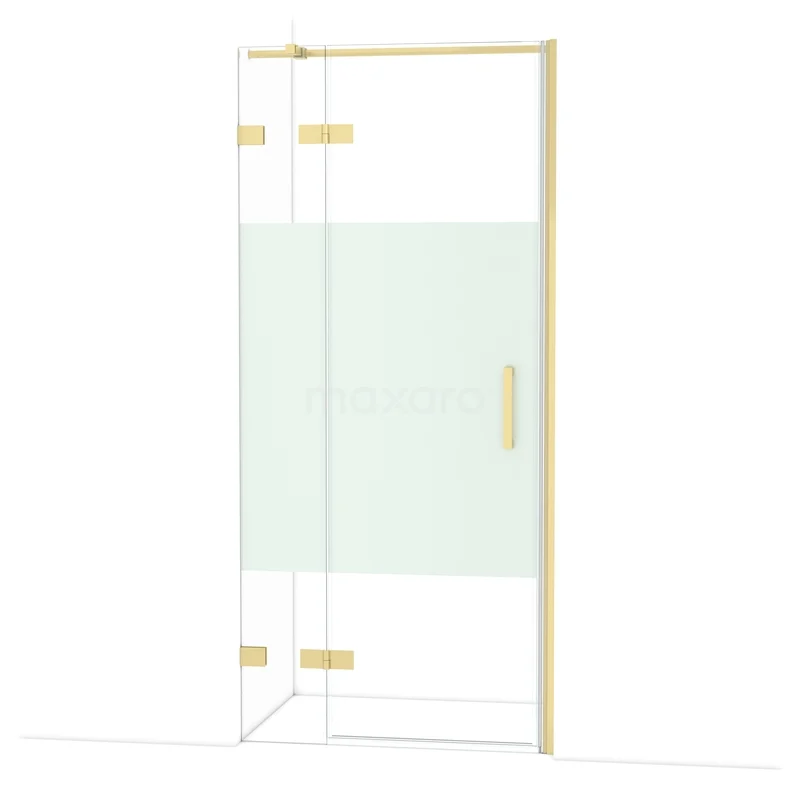 Diamond Duschtür | 90 cm Helles Gold Klar mit matter Streifen Drehtür