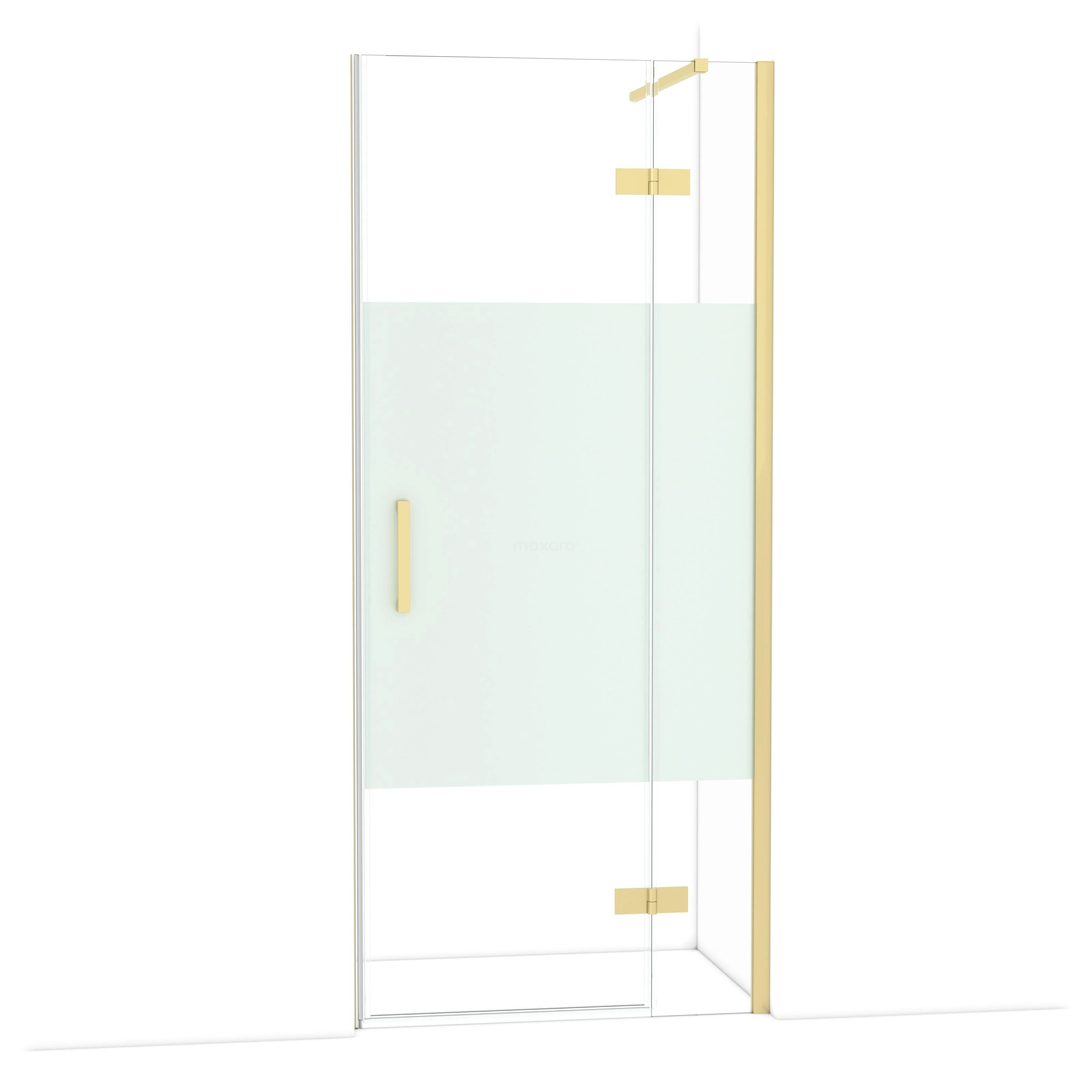 Diamond Duschtür | 90 cm Helles Gold Klar mit matter Streifen Drehtür