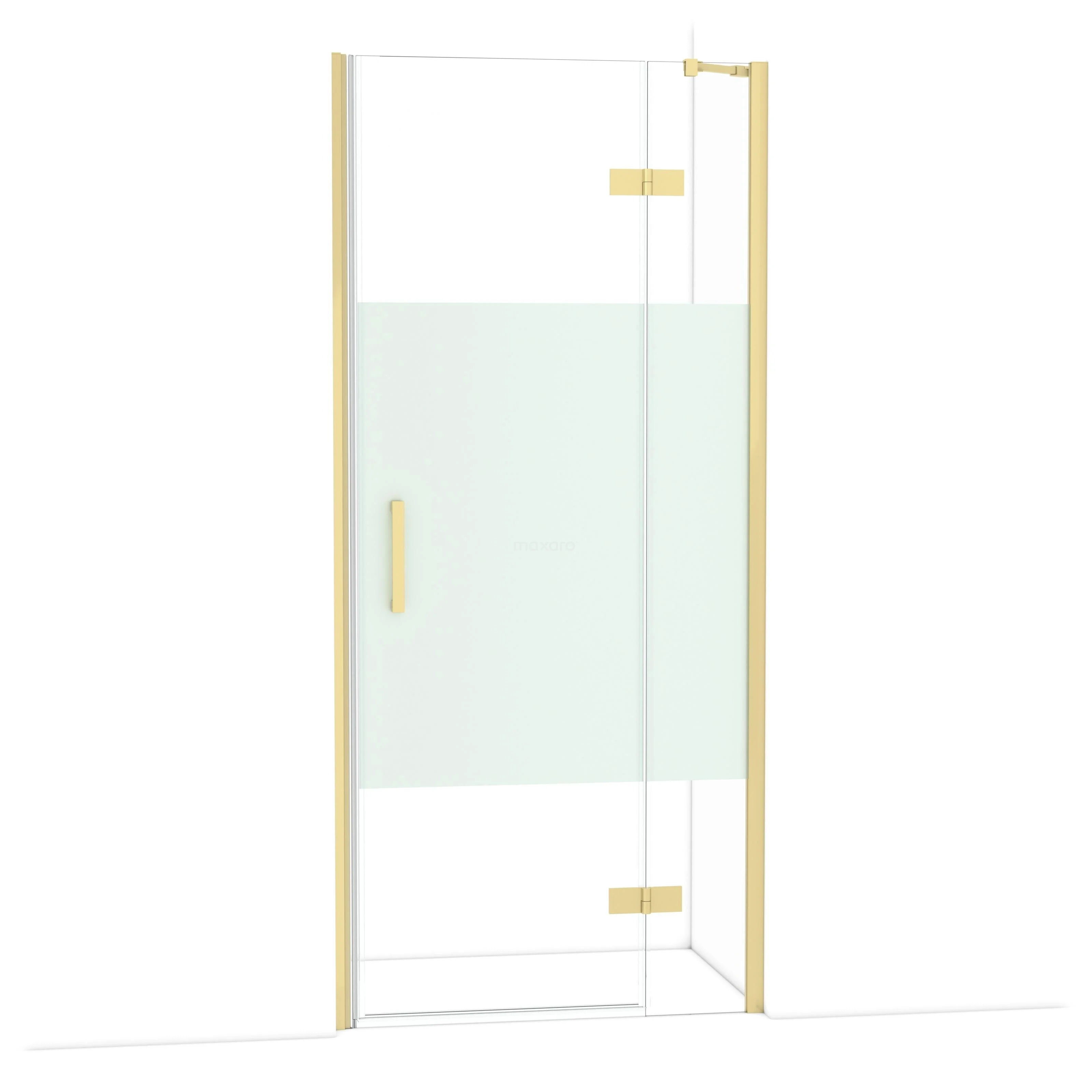 Diamond Duschtür | 90 cm Helles Gold Klar mit matter Streifen Drehtür