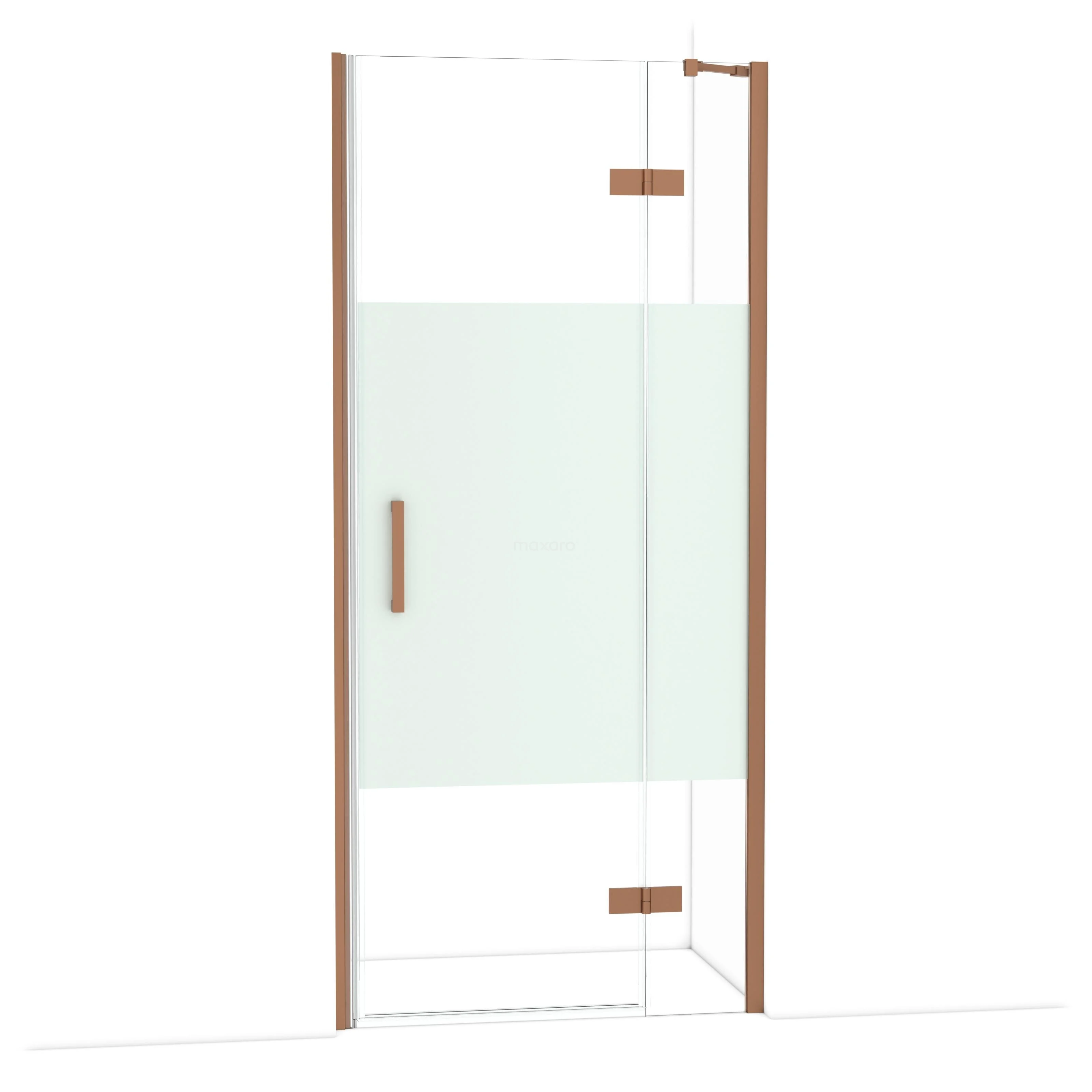 Die 90 cm lange Drehtür von Diamond ist ideal für den Abschluss Ihres Duschbereichs. Sie ist in Kupfer ausgeführt und verfügt über hochwertige Scharniere, ein Wandprofil und einen vertikalen Griff. Das Klarglas mit mattem Streifen sorgt für mehr Privatsphäre. Die Verstellbarkeit macht es einfach, die Duschtür zu montieren. Die Gesamtbreite ist von 91,8 bis 94 cm verstellbar.