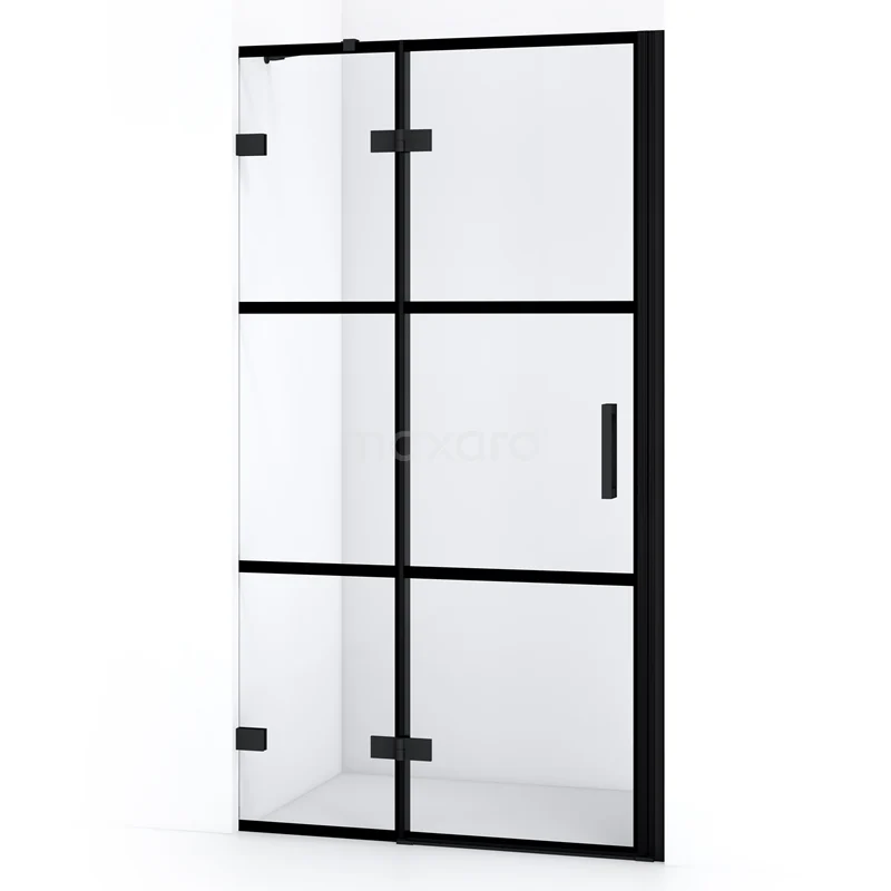 Diamond Duschtür | 90 cm Matt Schwarz Klar mit 4 schwarzen Streifen Drehtür