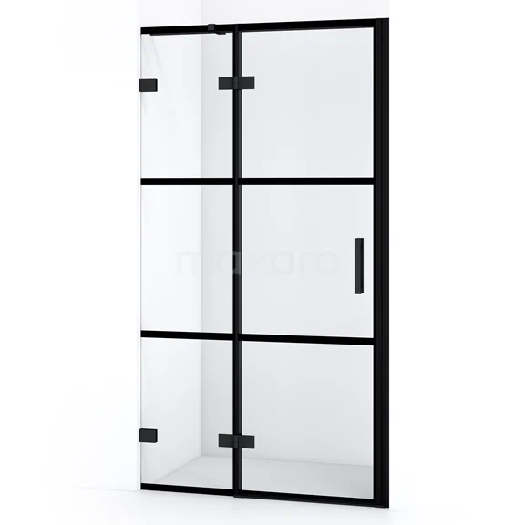 Diamond Duschtür | 90 cm Matt Schwarz Klar mit 4 schwarzen Streifen Drehtür