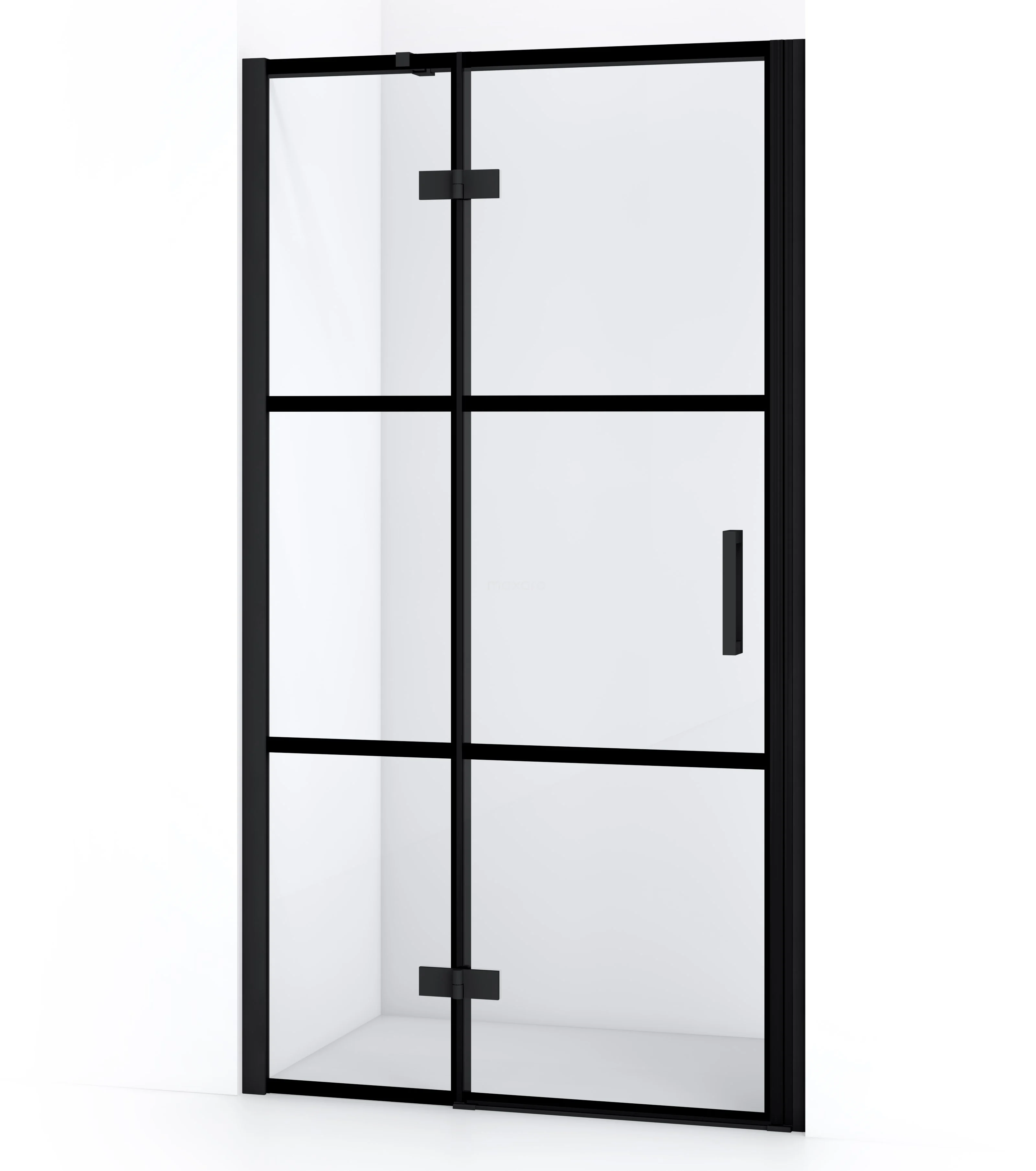 Diamond Duschtür | 90 cm Matt Schwarz Klar mit 4 schwarzen Streifen Drehtür