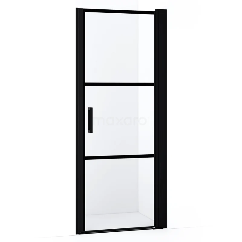 Diamond Duschtür | 90 cm Matt Schwarz Klar mit 4 schwarzen Streifen Drehtür