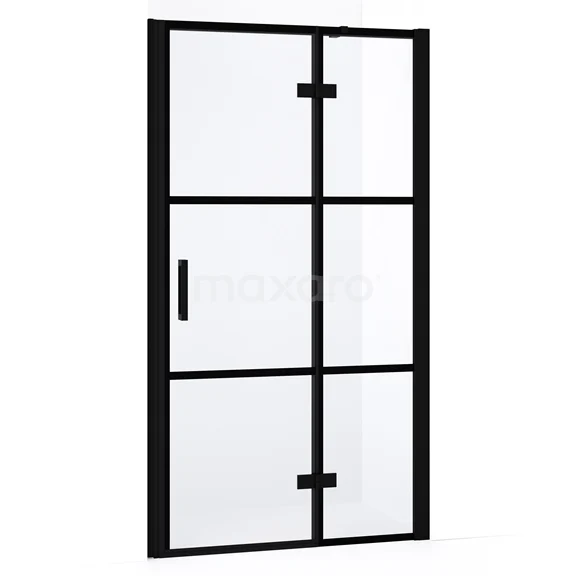 Diamond Duschtür | 90 cm Matt Schwarz Klar mit 4 schwarzen Streifen Drehtür