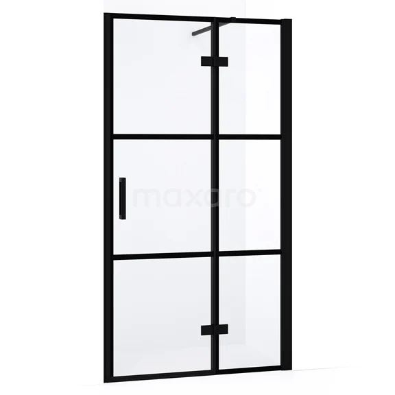 Diamond Duschtür | 90 cm Matt Schwarz Klar mit 4 schwarzen Streifen Drehtür