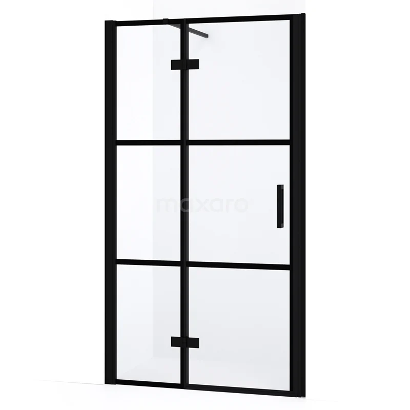 Diamond Duschtür | 90 cm Matt Schwarz Klar mit 4 schwarzen Streifen Drehtür