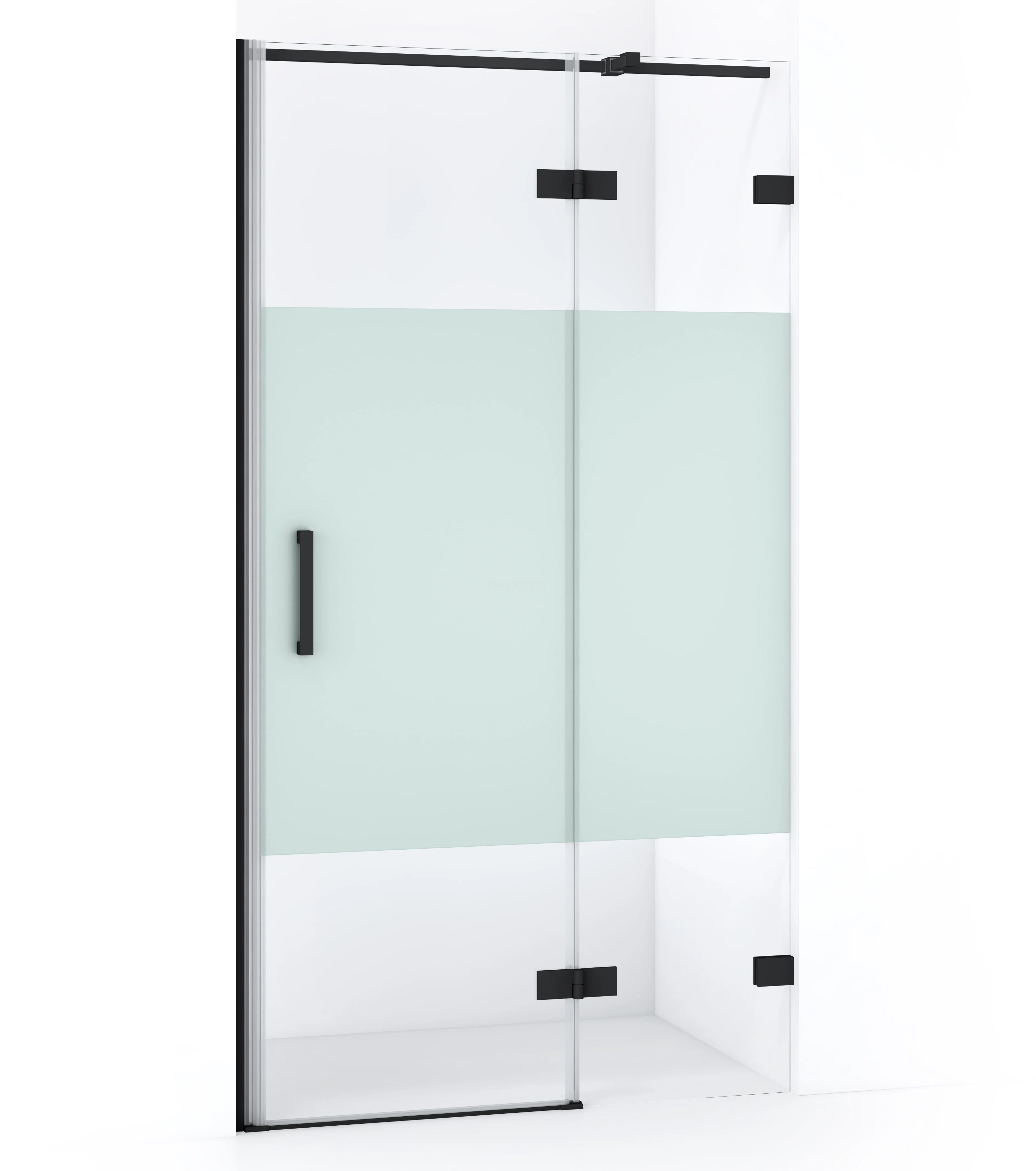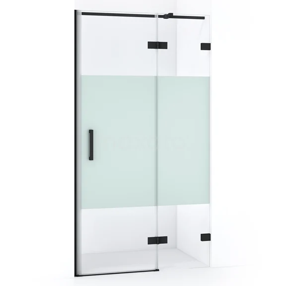 Diamond Duschtür | 90 cm Matt Schwarz Klar mit matter Streifen Drehtür