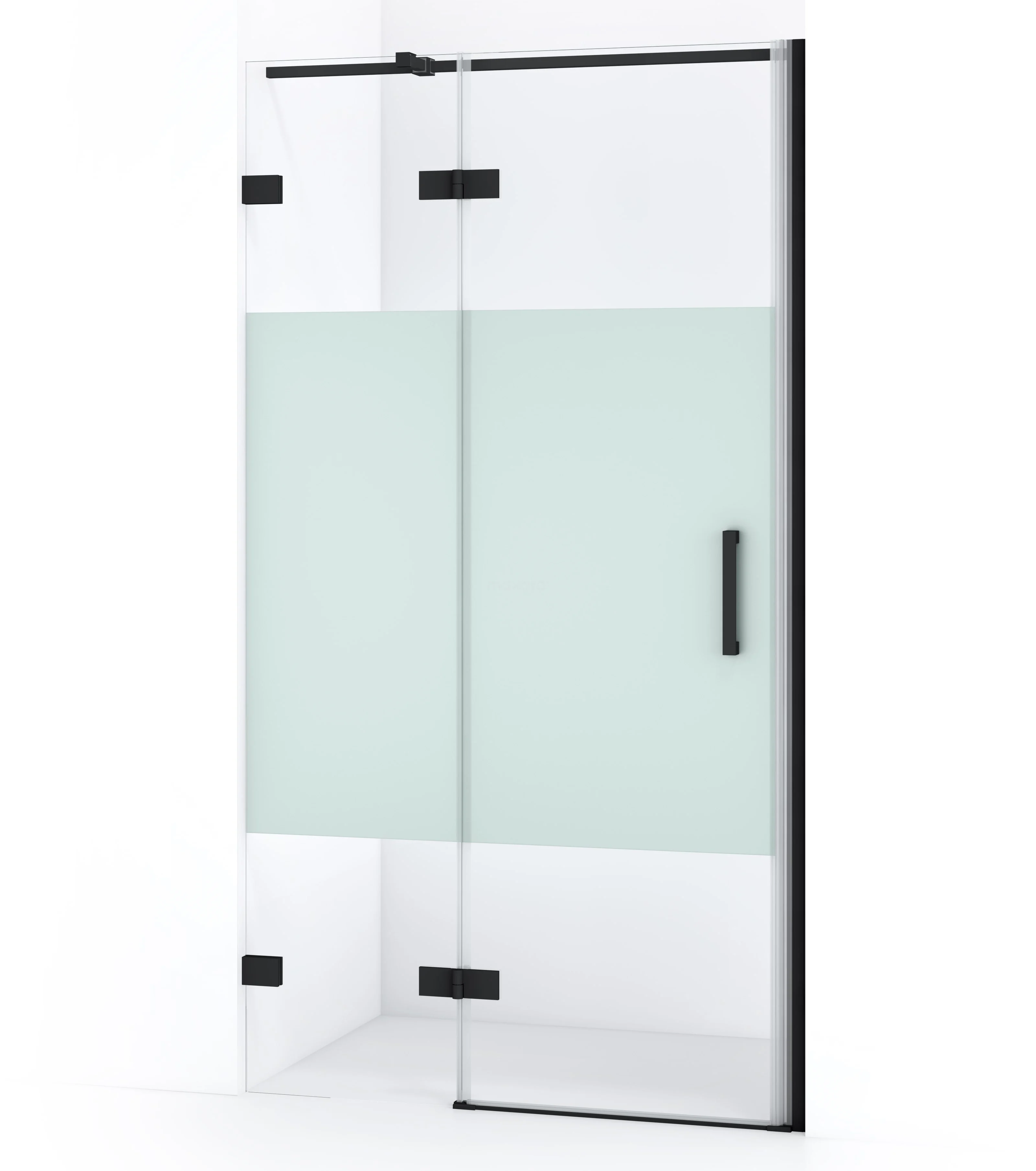 Diamond Duschtür | 90 cm Matt Schwarz Klar mit matter Streifen Drehtür