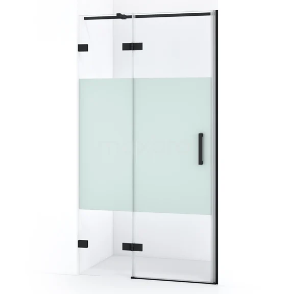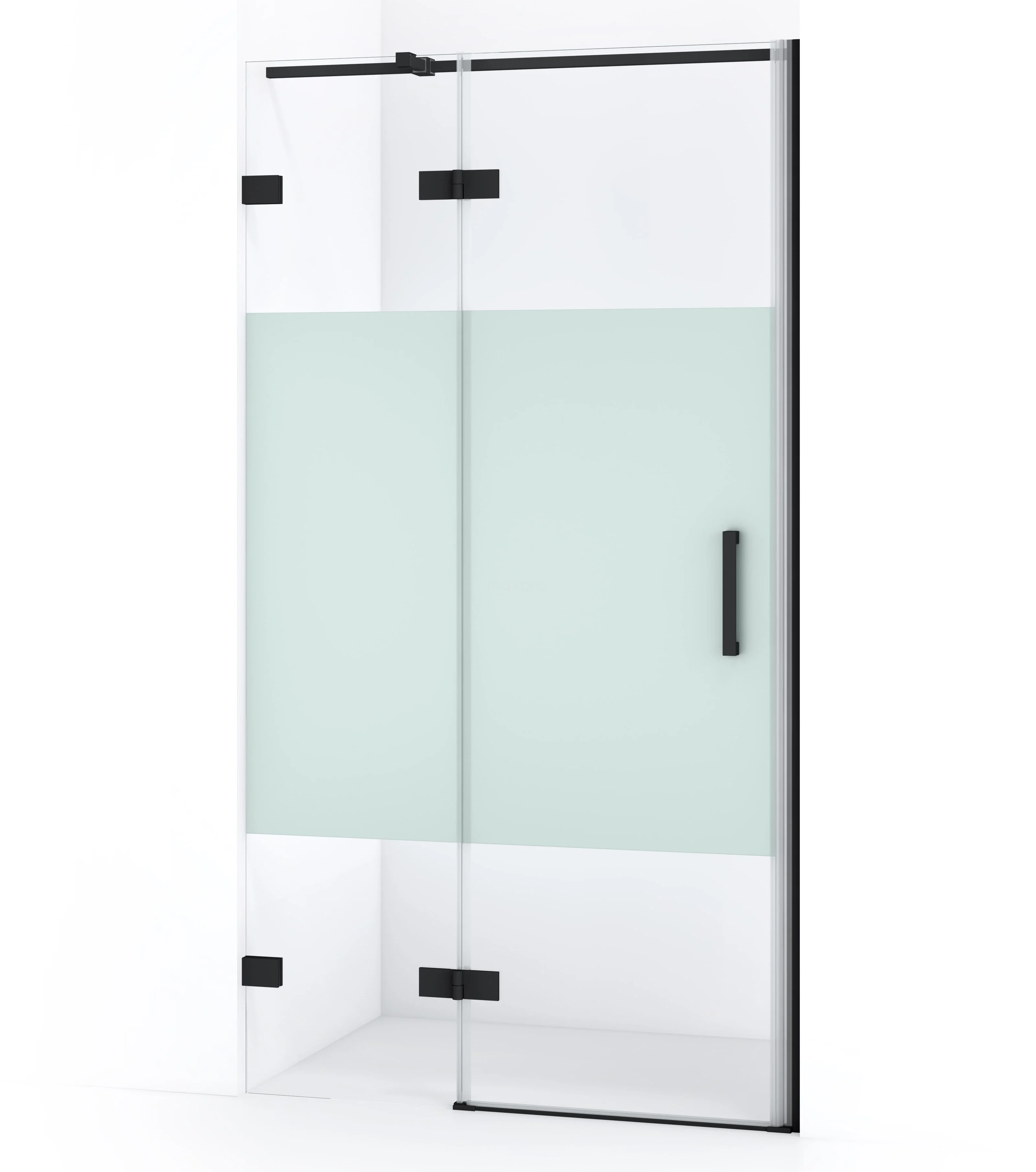 Diamond Duschtür | 90 cm Matt Schwarz Klar mit matter Streifen Drehtür