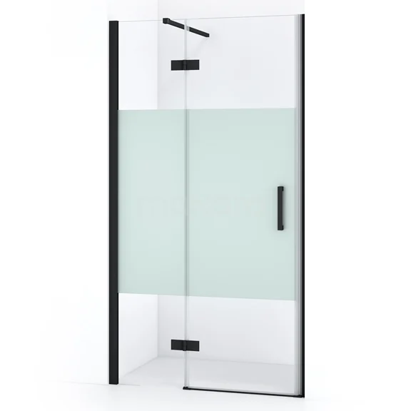 Diamond Duschtür | 90 cm Matt Schwarz Klar mit matter Streifen Drehtür