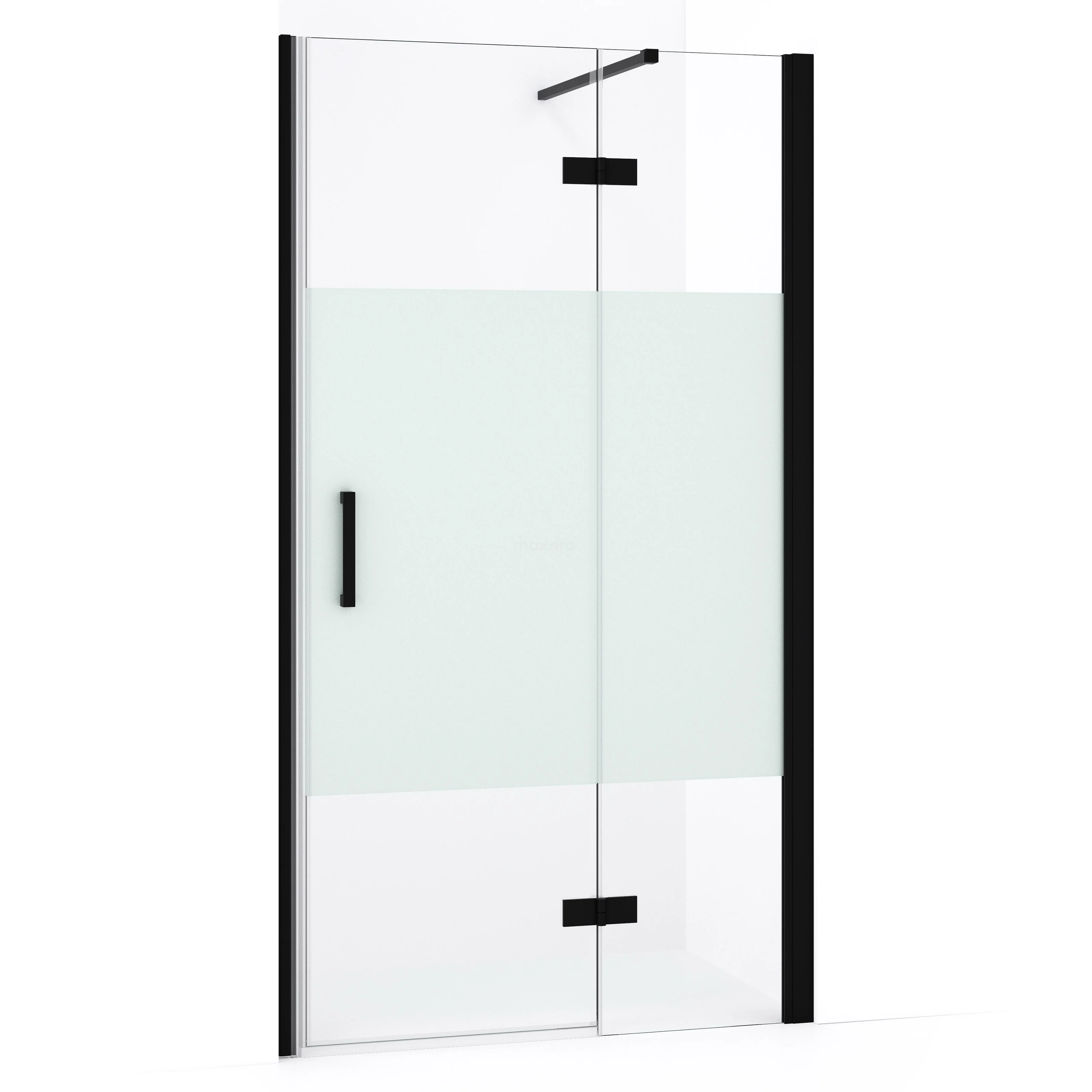 Diamond Duschtür | 90 cm Matt Schwarz Klar mit matter Streifen Drehtür