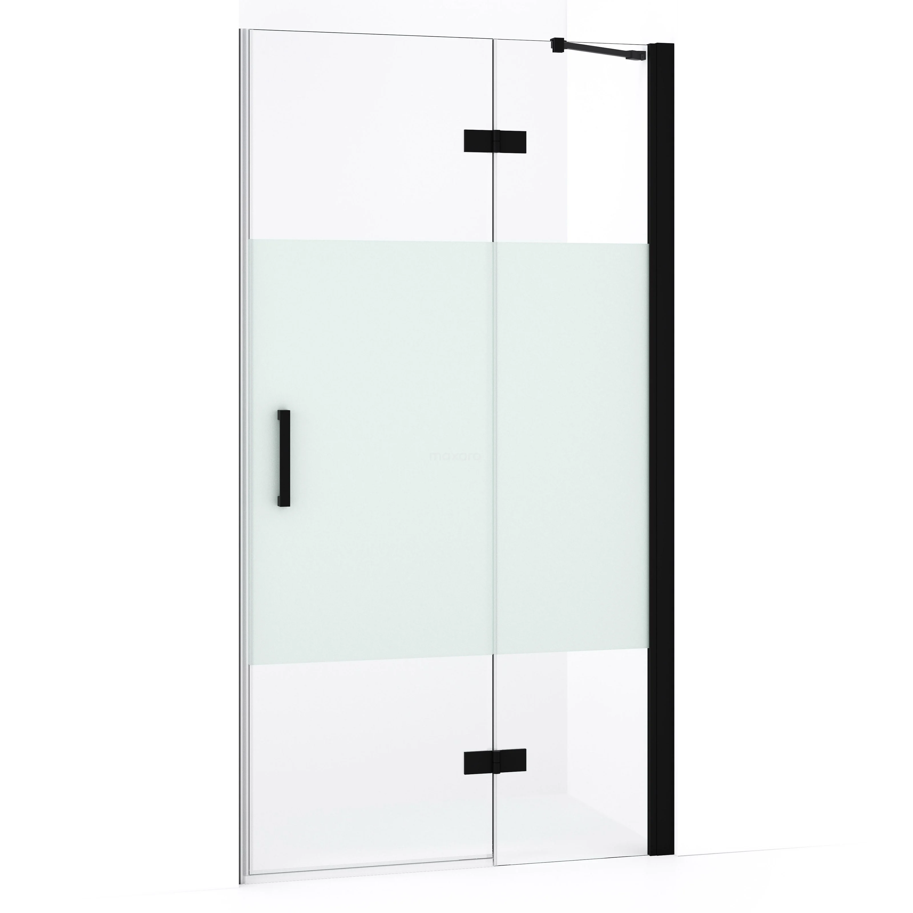 Diamond Duschtür | 90 cm Matt Schwarz Klar mit matter Streifen Drehtür