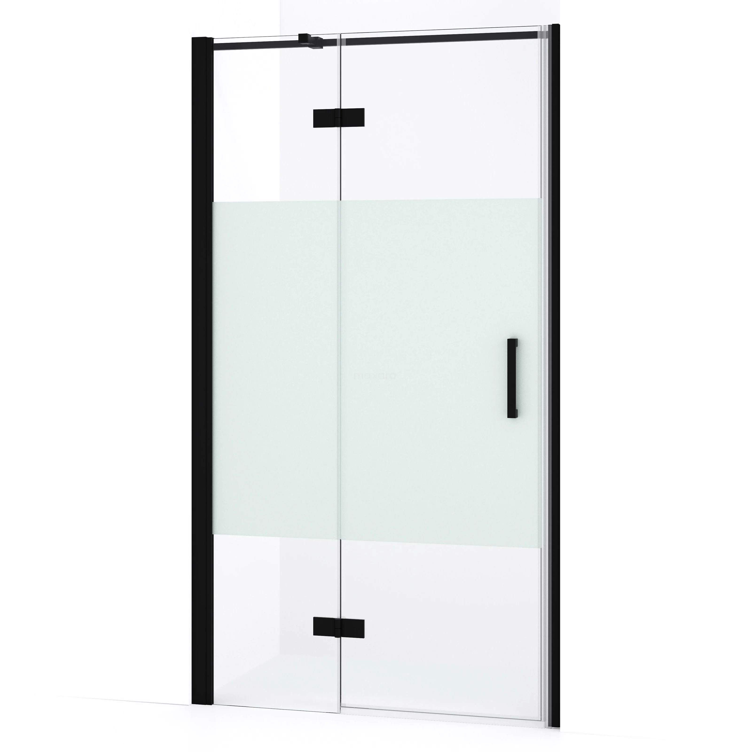 Diamond Duschtür | 90 cm Matt Schwarz Klar mit matter Streifen Drehtür
