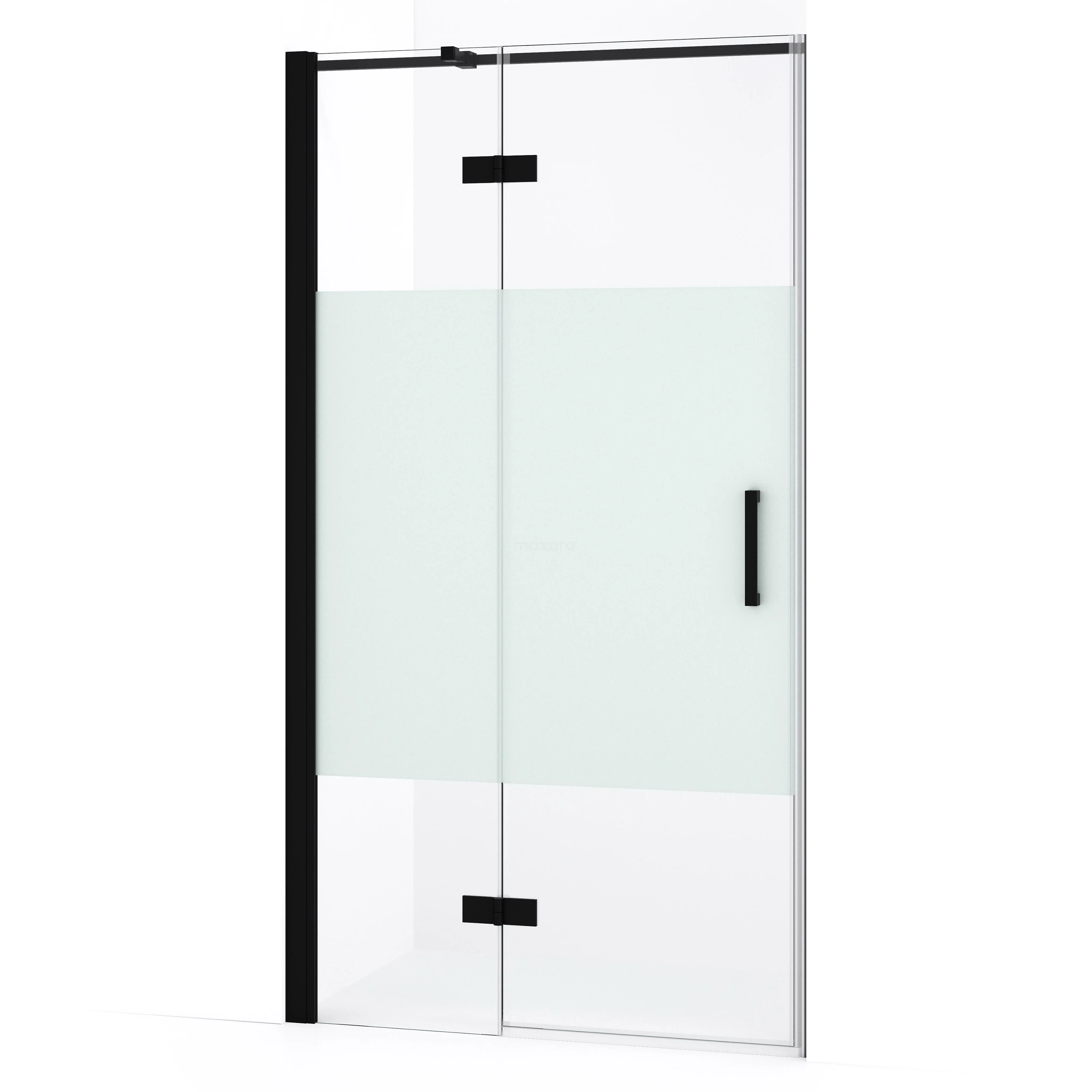 Diamond Duschtür | 90 cm Matt Schwarz Klar mit matter Streifen Drehtür