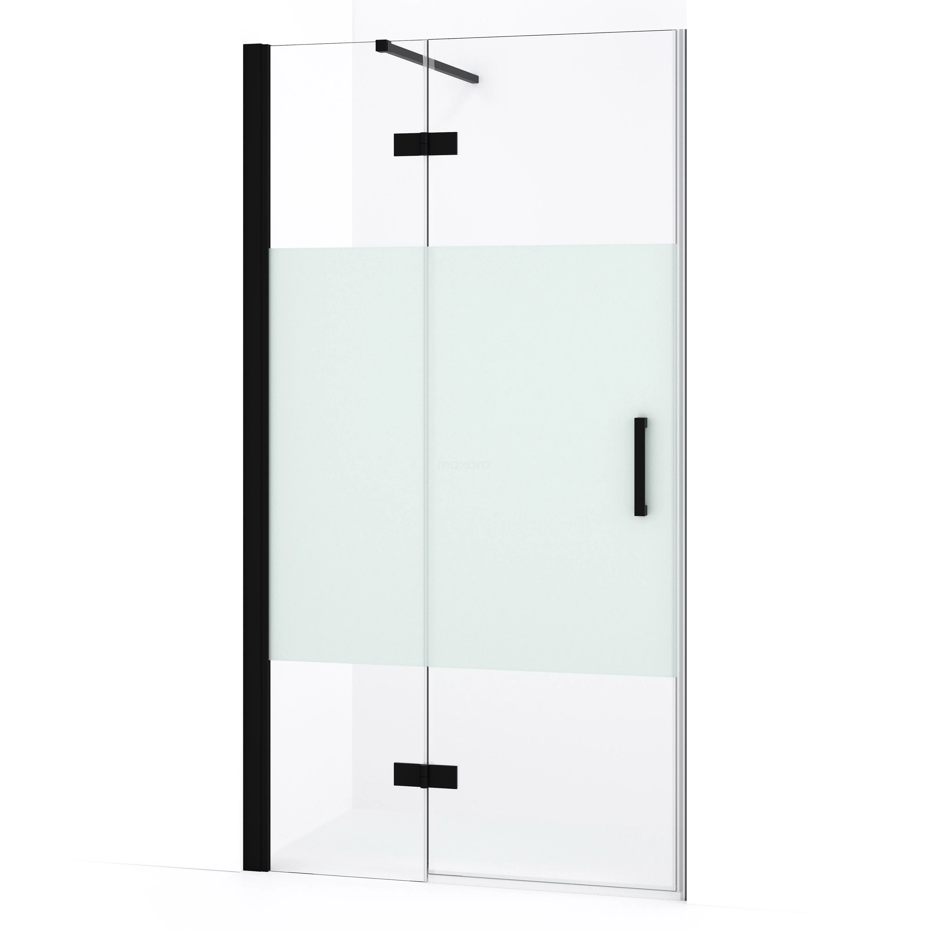Diamond Duschtür | 90 cm Matt Schwarz Klar mit matter Streifen Drehtür
