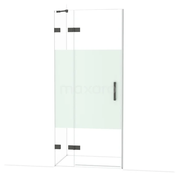 Diamond Duschtür | 90 cm Schwarzchrom Klar mit matter Streifen Drehtür