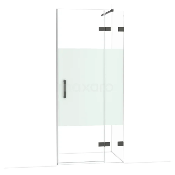Diamond Duschtür | 90 cm Schwarzchrom Klar mit matter Streifen Drehtür