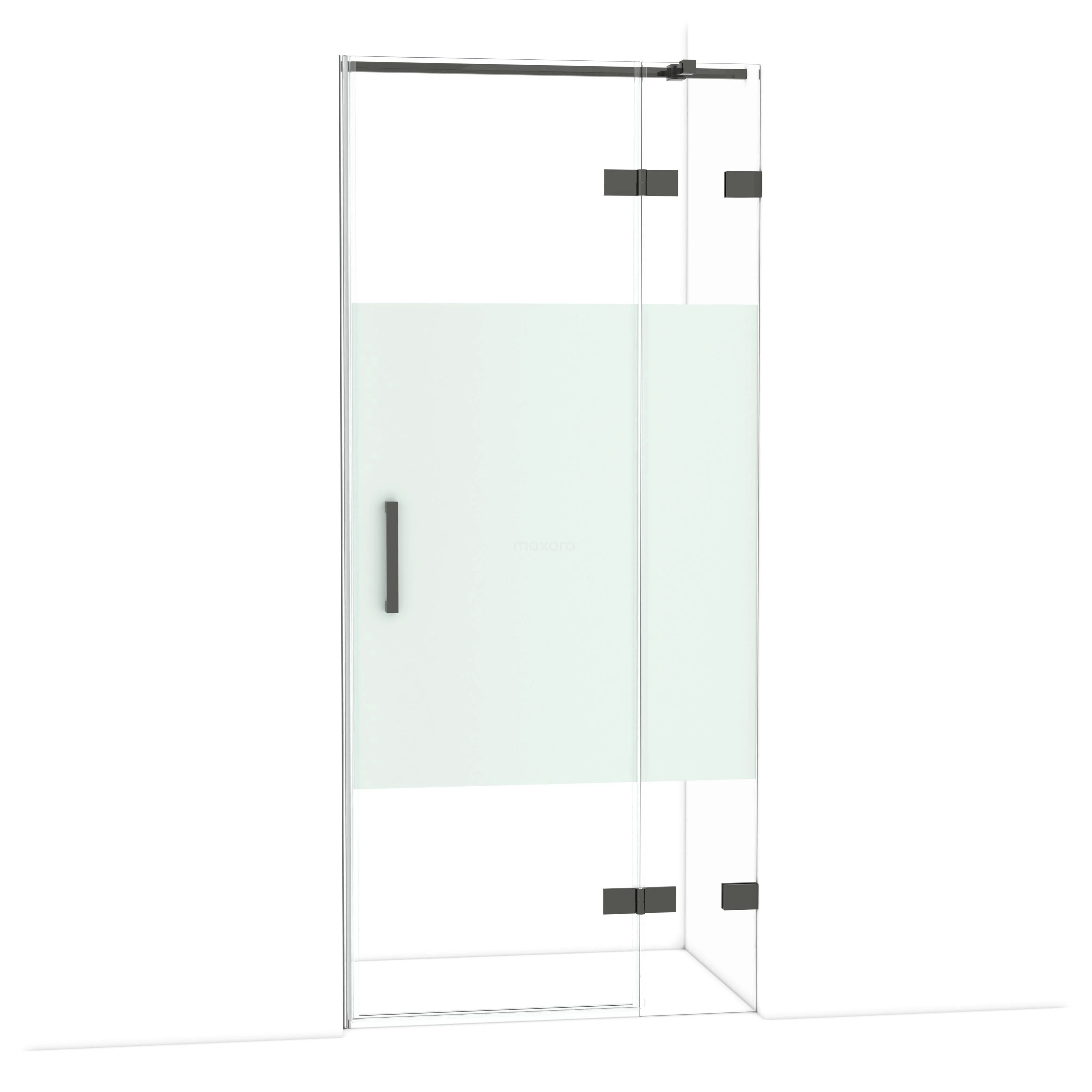 Diamond Duschtür | 90 cm Schwarzchrom Klar mit matter Streifen Drehtür