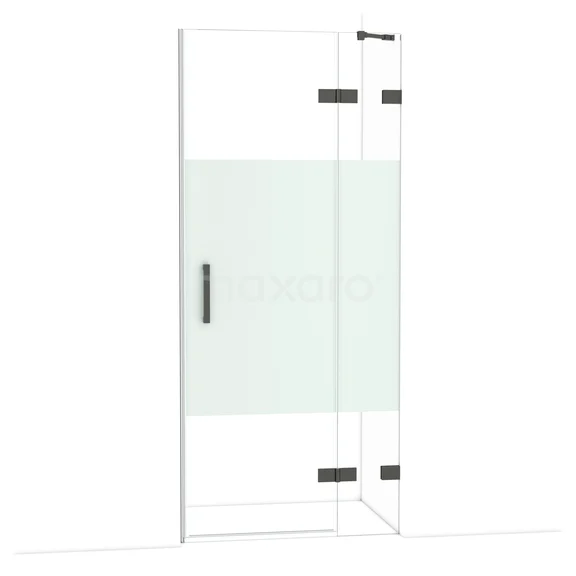 Diamond Duschtür | 90 cm Schwarzchrom Klar mit matter Streifen Drehtür