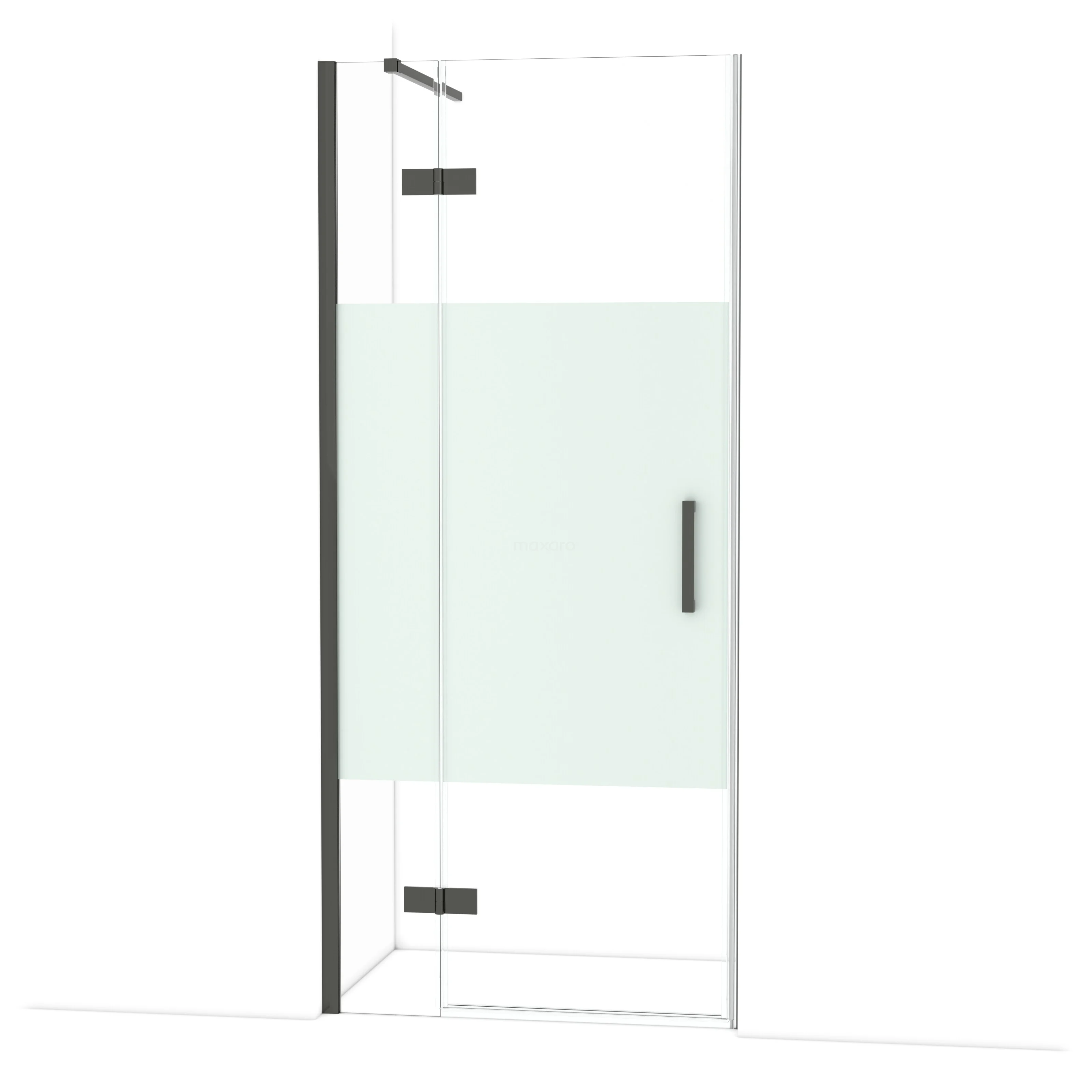 Diamond Duschtür | 90 cm Schwarzchrom Klar mit matter Streifen Drehtür