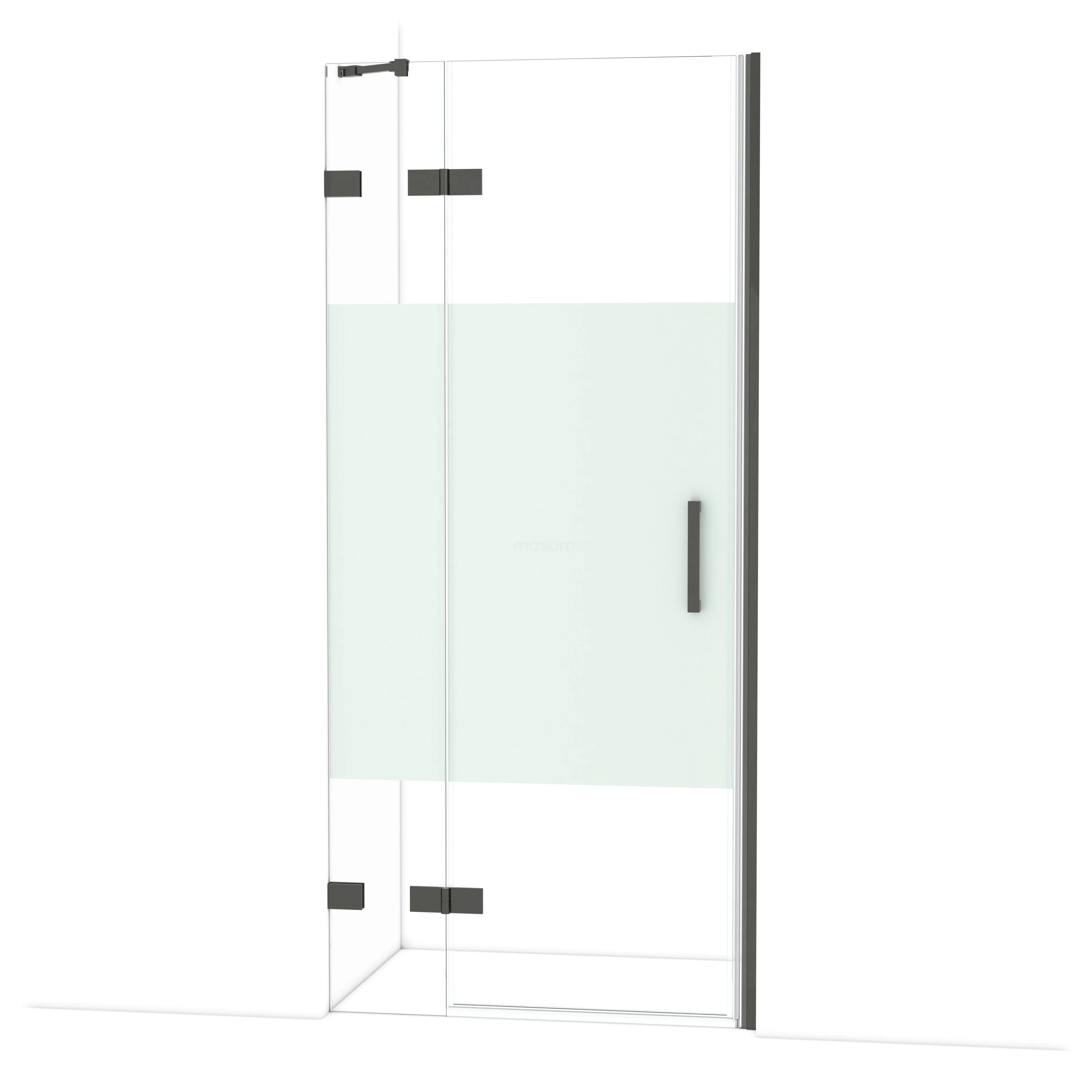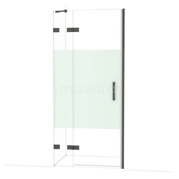 Diamond Duschtür | 90 cm Schwarzchrom Klar mit matter Streifen Drehtür