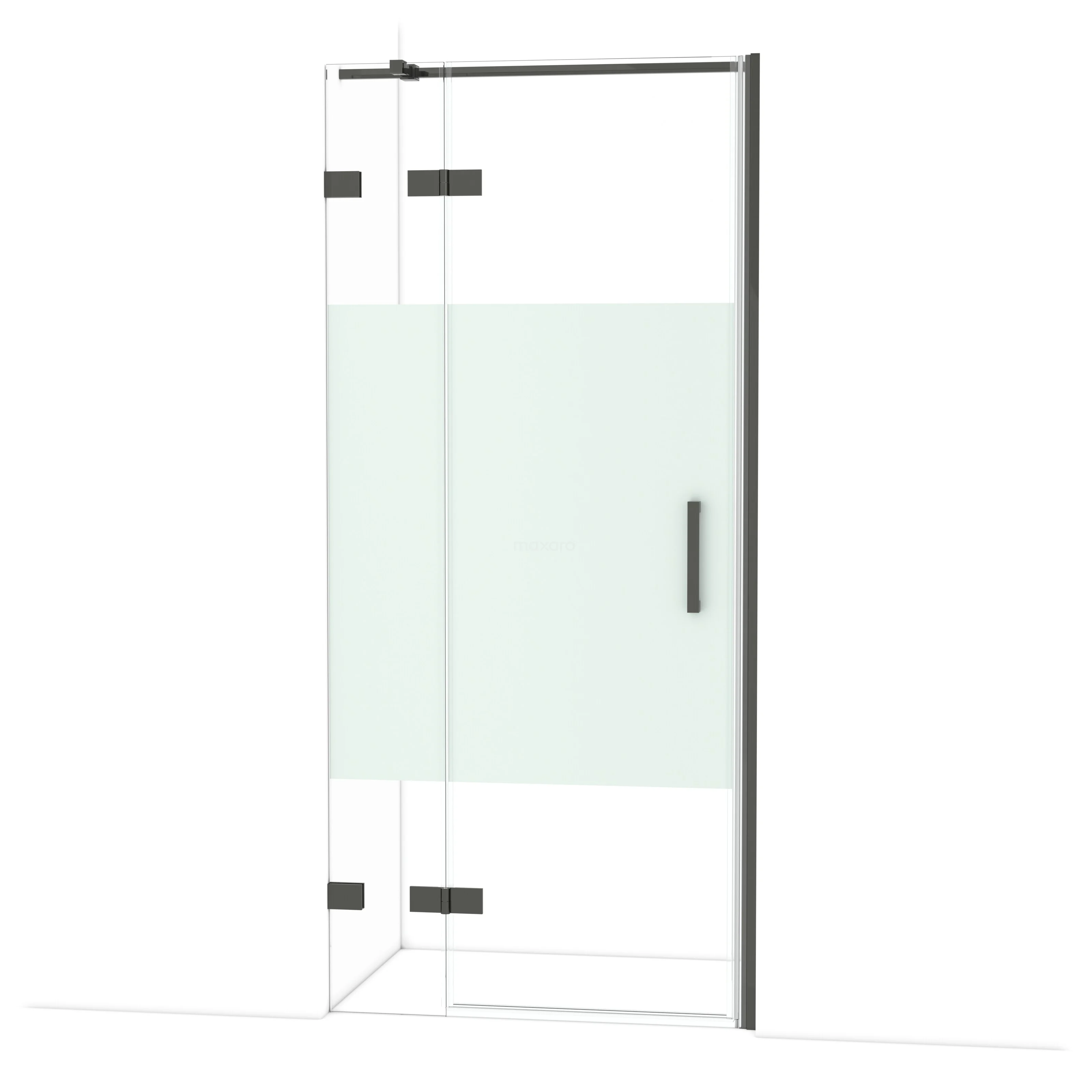 Diamond Duschtür | 90 cm Schwarzchrom Klar mit matter Streifen Drehtür