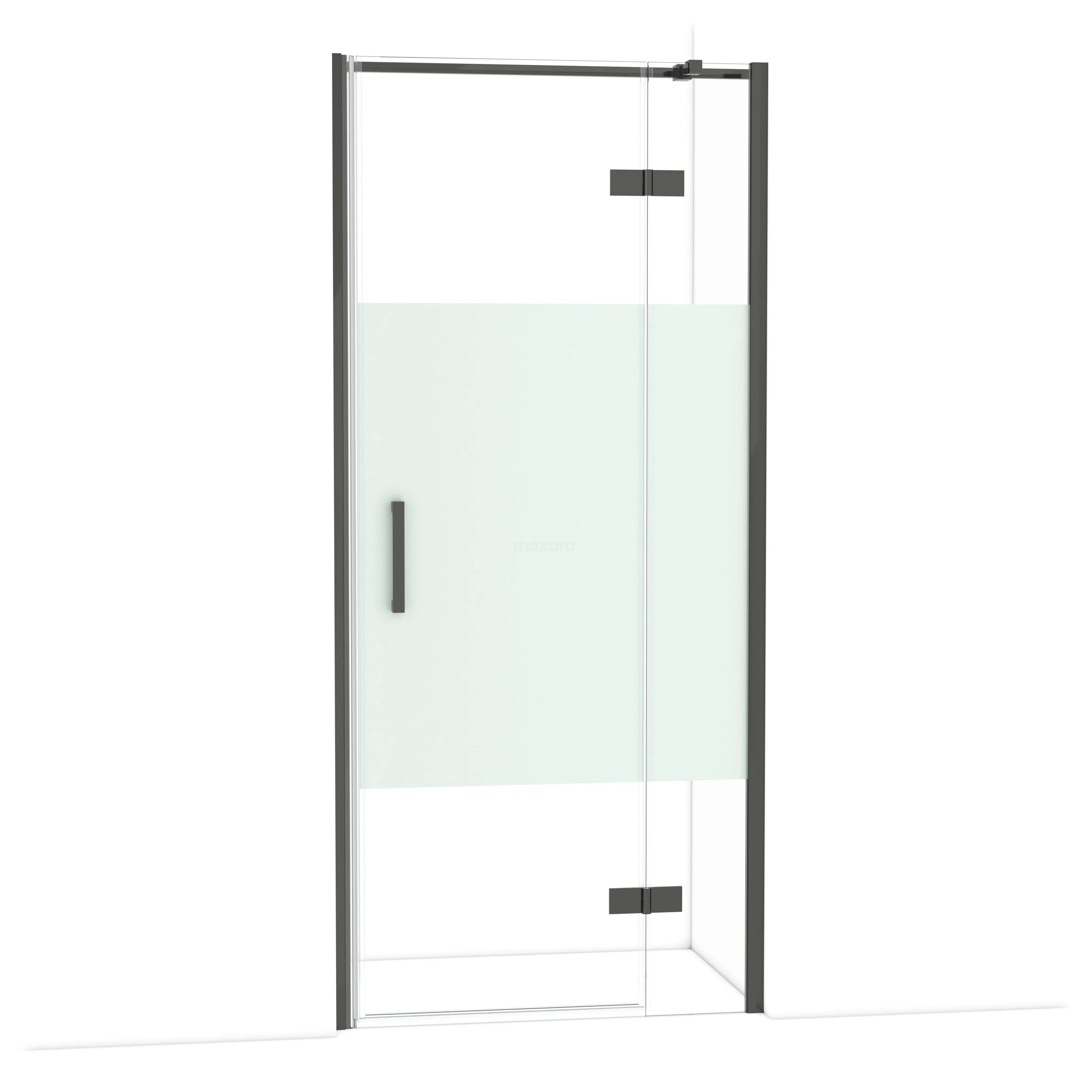 Diamond Duschtür | 90 cm Schwarzchrom Klar mit matter Streifen Drehtür
