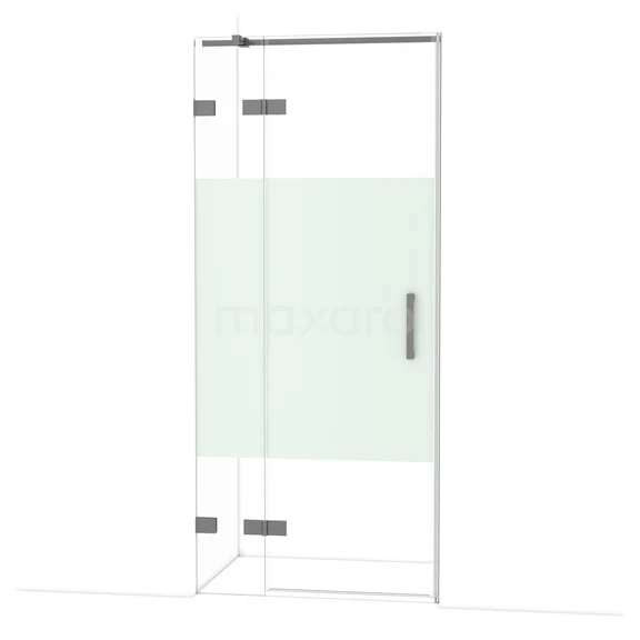 Diamond Duschtür | 90 cm Schwarzes Metall Klar mit matter Streifen Drehtür