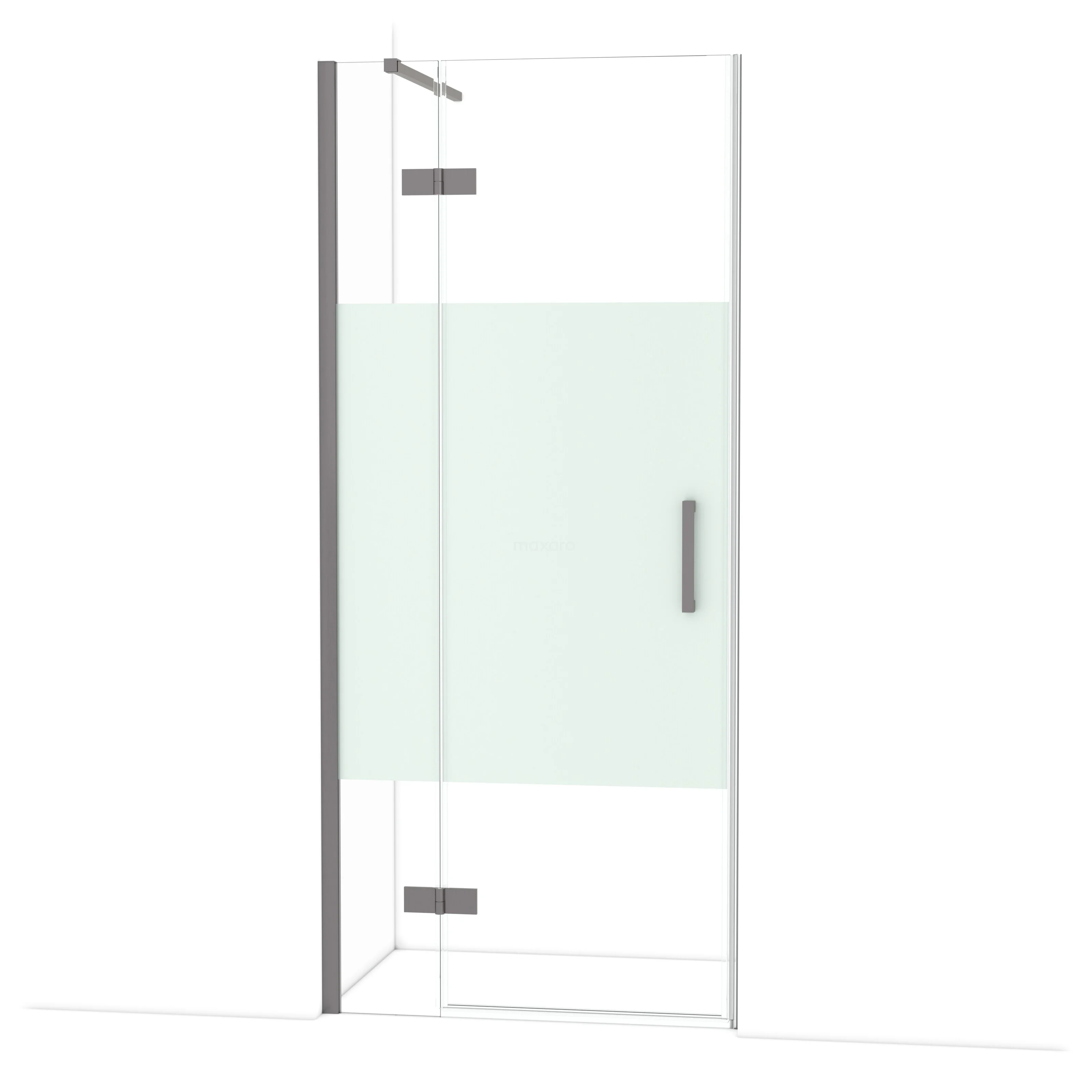 Diamond Duschtür | 90 cm Schwarzes Metall Klar mit matter Streifen Drehtür