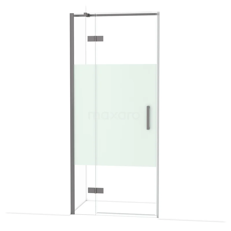 Diamond Duschtür | 90 cm Schwarzes Metall Klar mit matter Streifen Drehtür