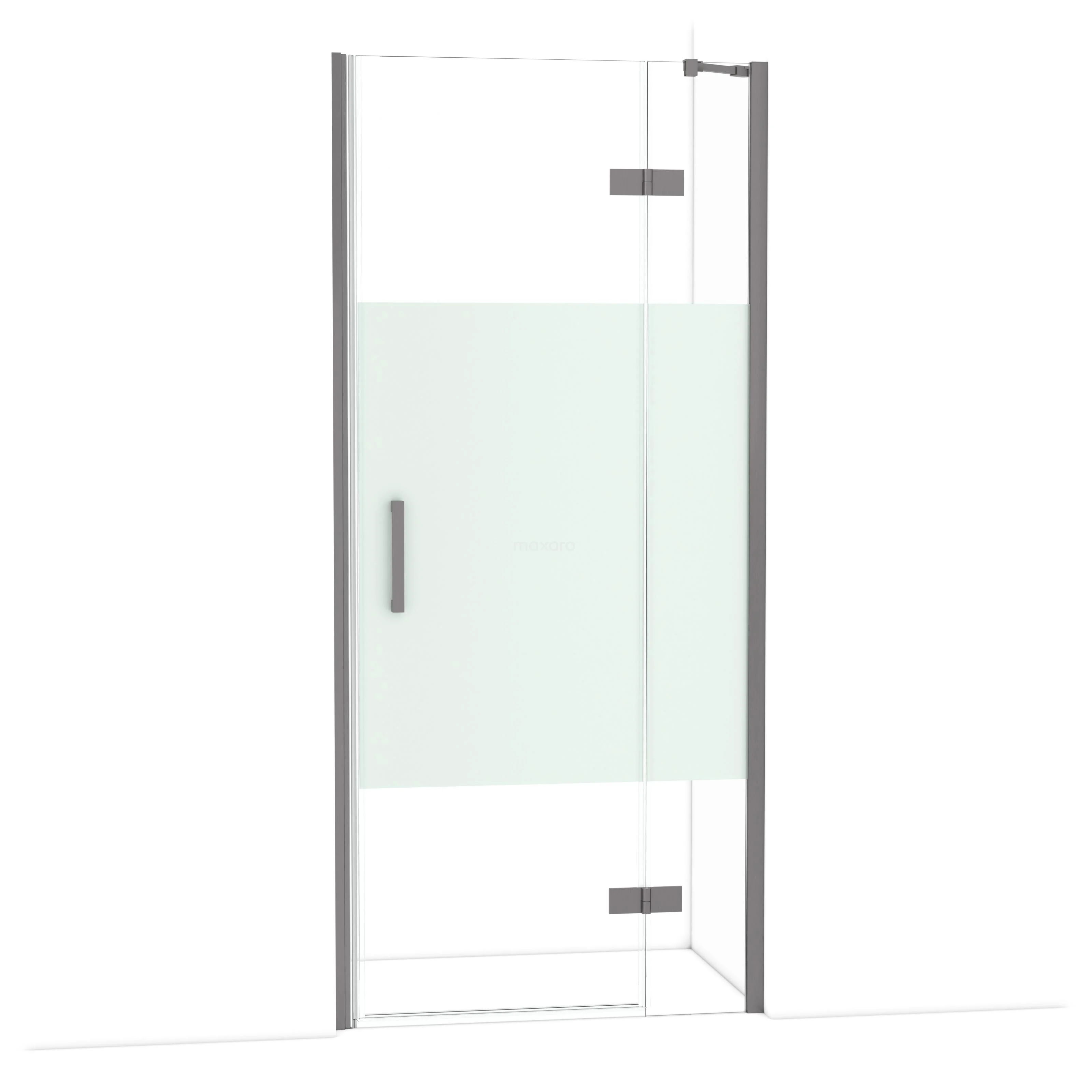 Diamond Duschtür | 90 cm Schwarzes Metall Klar mit matter Streifen Drehtür