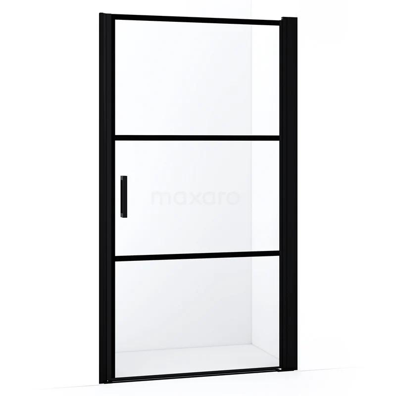 Diamond Duschtür | 95 cm Matt Schwarz Klar mit 4 schwarzen Streifen Drehtür