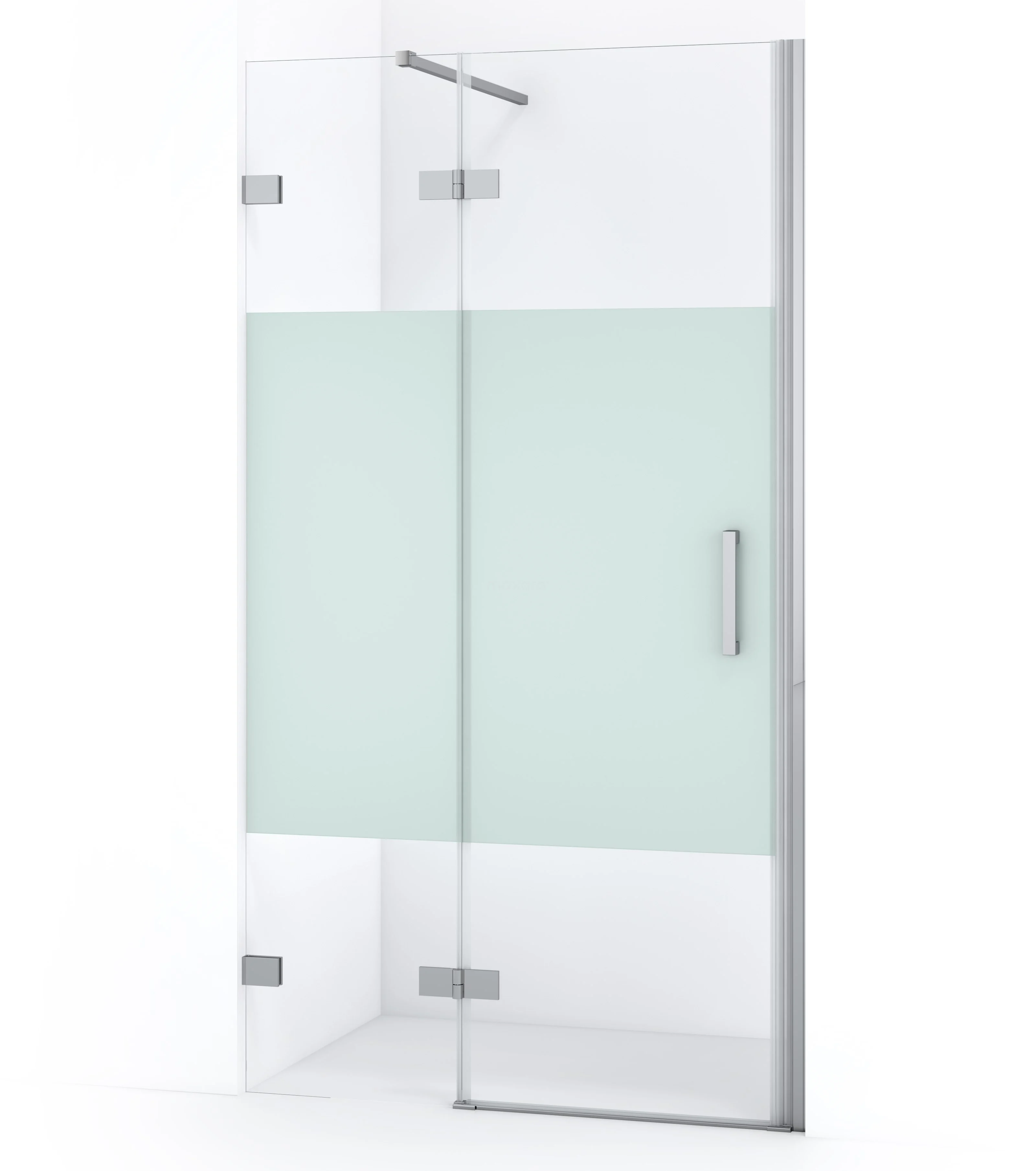 Die Drehtür Diamond 100 cm ist ideal zum Abschließen Ihres Duschbereichs. Sie ist zeitlos verchromt und verfügt über hochwertige Scharniere, eine Zwei-Punkt-Befestigung an der Wand und einen vertikalen Griff. Der mattierte Streifen auf dem Glas sorgt für mehr Privatsphäre. Die Verstellbarkeit macht es einfach, die Duschtür zu montieren. Die Gesamtbreite ist von 101,7 bis 102,7 cm verstellbar.