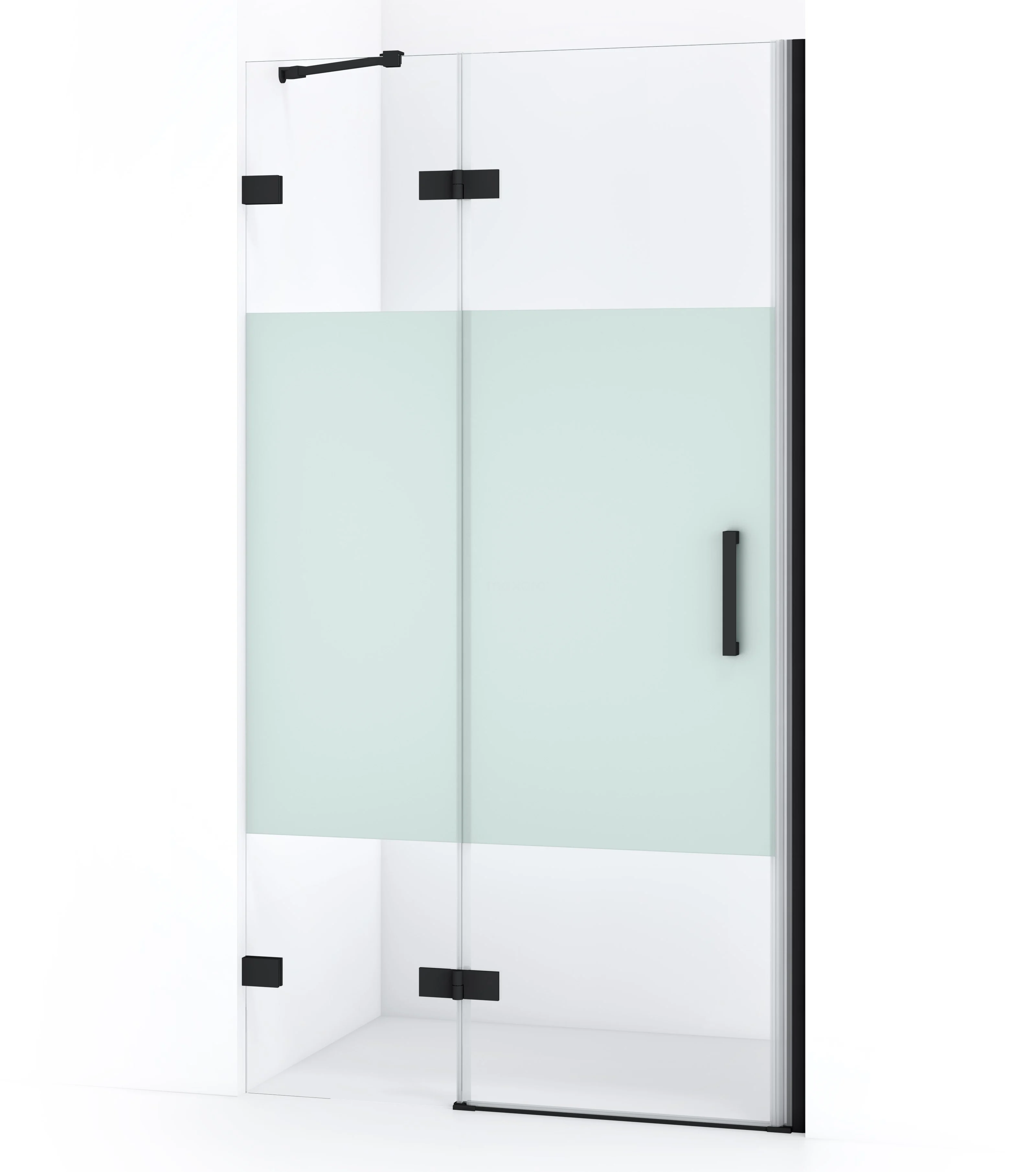 Die Drehtür Diamond 100 cm ist ideal zum Abschließen Ihres Duschbereichs. Sie hat eine robuste, mattschwarze Oberfläche und ist mit hochwertigen Scharnieren, einer Zweipunktbefestigung an der Wand und einem vertikalen Griff ausgestattet. Der mattierte Streifen auf dem Glas sorgt für mehr Privatsphäre. Die Verstellbarkeit macht es einfach, die Duschtür zu montieren. Die Gesamtbreite ist von 101,7 bis 102,7 cm verstellbar.