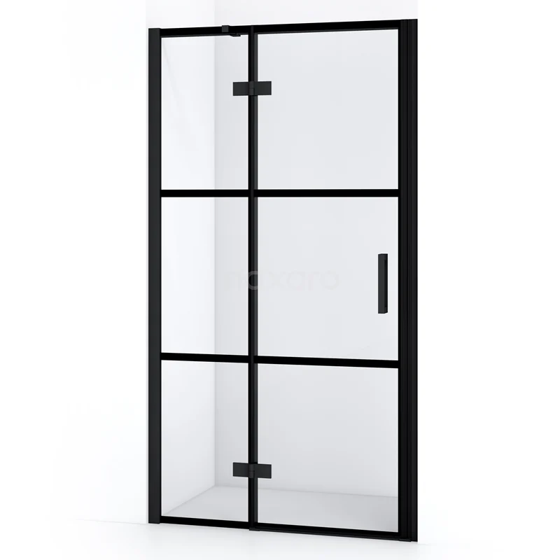 Die 100 cm lange Drehtür von Diamond ist ideal, um Ihren Duschbereich abzuschließen. Sie ist in robustem Matt Schwarz gehalten und mit hochwertigen Scharnieren, Wandprofilen und einem vertikalen Griff ausgestattet. Das Klarglas mit schwarzen Streifen verleiht ihr einen industriellen Touch. Die Verstellbarkeit macht es einfach, die Duschtür zu montieren. Die Gesamtbreite ist von 101,8 bis 104 cm verstellbar.