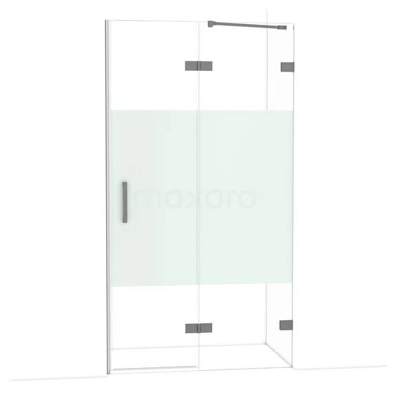 Diamond Duschtür | 110 cm Schwarzes Metall Klar mit matter Streifen Drehtür