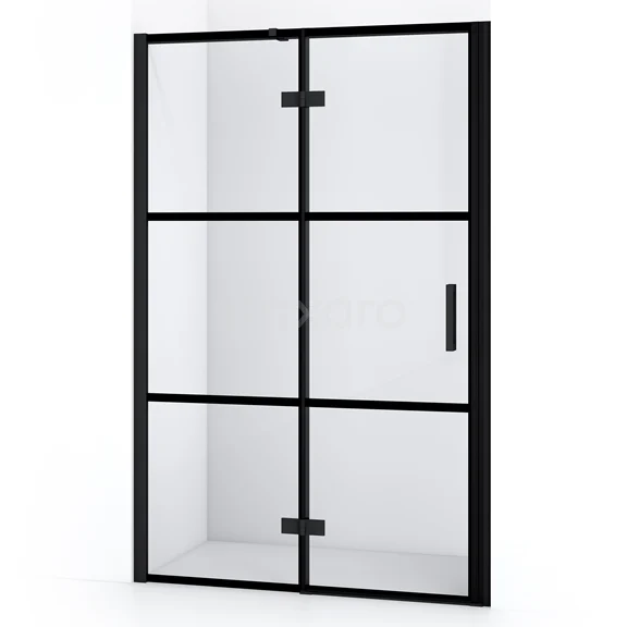 Die 120 cm lange Drehtür von Diamond ist ideal, um Ihren Duschbereich abzuschließen. Sie ist in robustem Matt Schwarz gehalten und mit hochwertigen Scharnieren, Wandprofilen und einem vertikalen Griff ausgestattet. Das Klarglas mit schwarzen Streifen verleiht ihr einen industriellen Touch. Die Verstellbarkeit macht es einfach, die Duschtür zu montieren. Die Gesamtbreite ist von 121,8 bis 124 cm verstellbar.