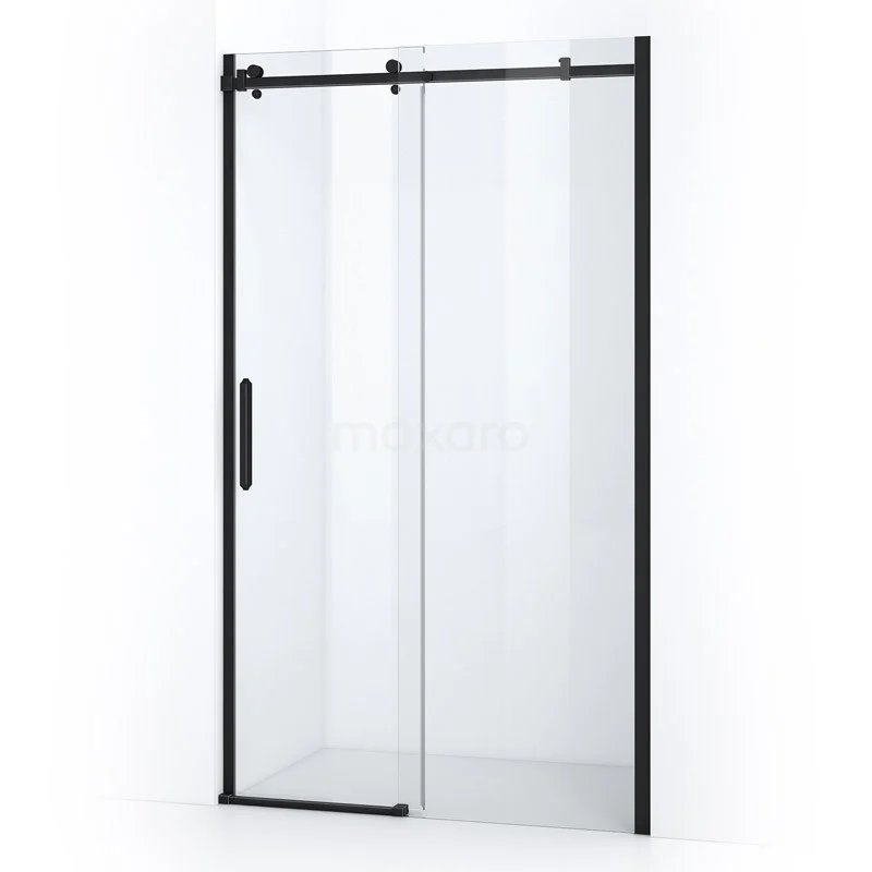 Duschwand Crystal Allure 120cm aus klarem Sicherheitsglas mit Schiebetür Quadratisches Rollensystem Matt Schwarz