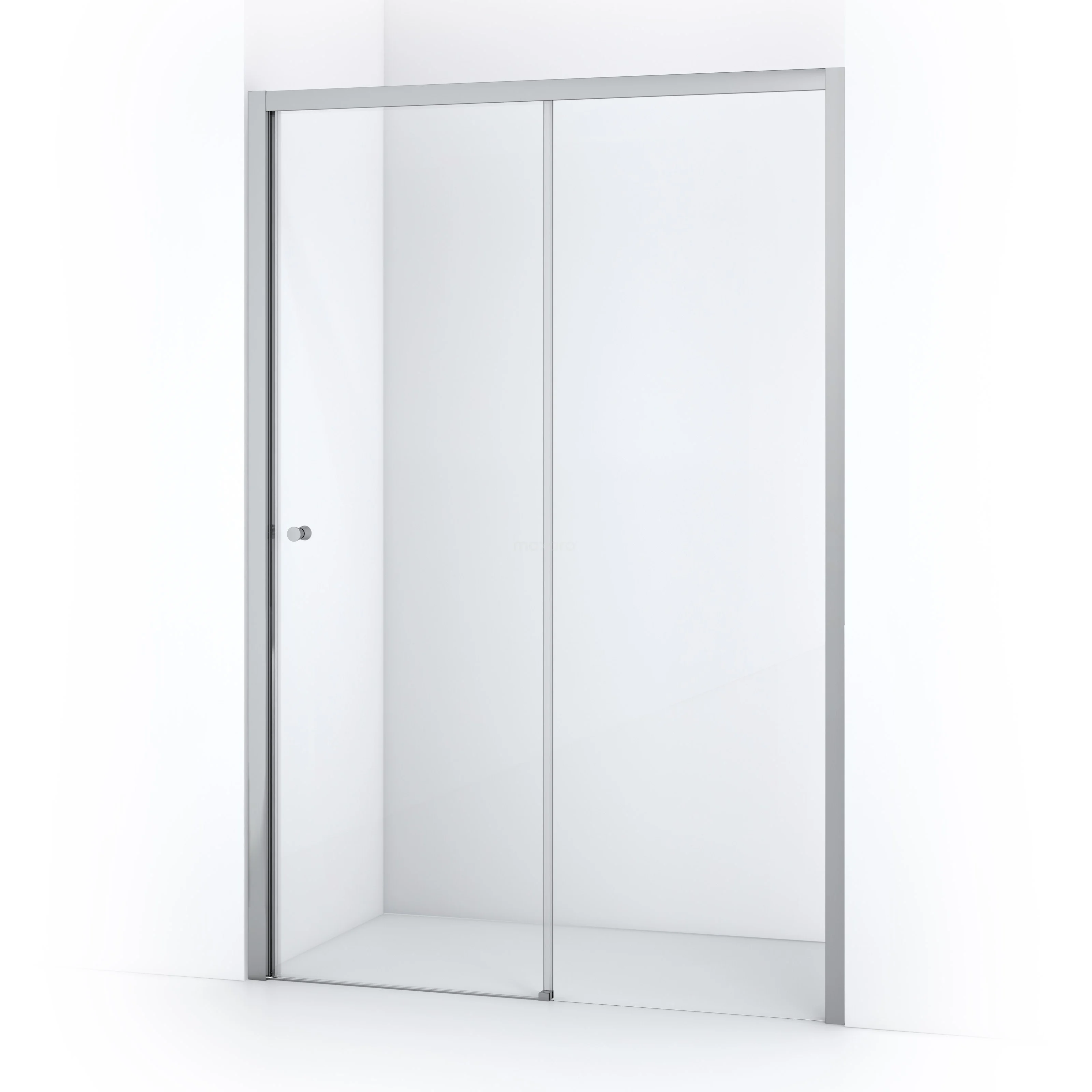 De schuifdeur heeft geen uitzwaai, waardoor deze ruimtebesparend is en ideaal voor een compacte badkamer.