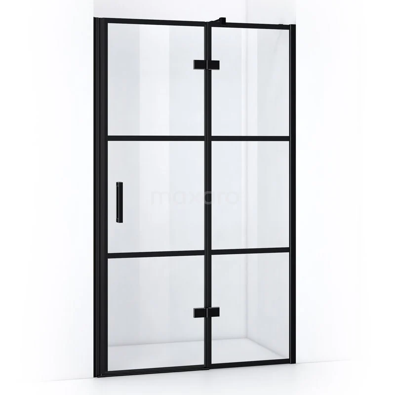 Duschwand mit Drehtür rechtsdrehend / rechts öffnend 120cm Klar mit schwarzen Streifen Matt Schwarz